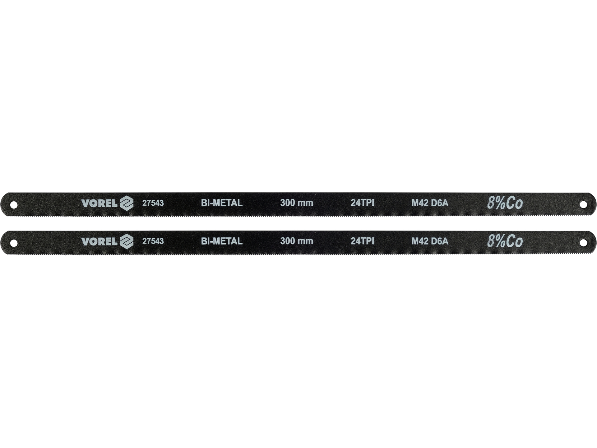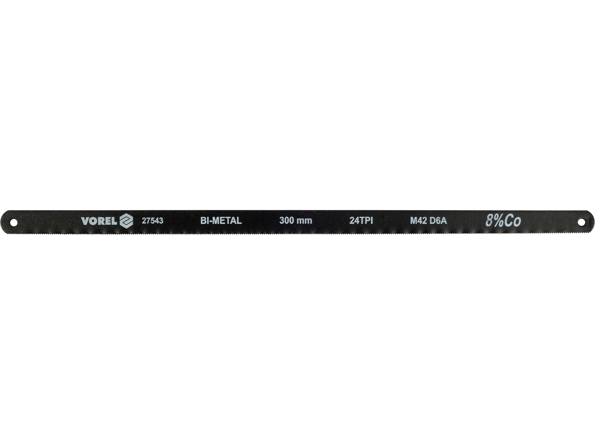 Brzeszczot bimetalowy Vorel 27543 jest specjalnie zaprojektowany do efektywnego cięcia metalu. Dzięki zastosowaniu bimetalu M42 w połączeniu z D6A i dodatkiem kobaltu Co 8%, narzędzie to charakteryzuje się wyjątkową trwałością i odpornością na ścieranie. Podziałka 24 TPI (zębów na cal) umożliwia precyzyjne i czyste cięcie.
