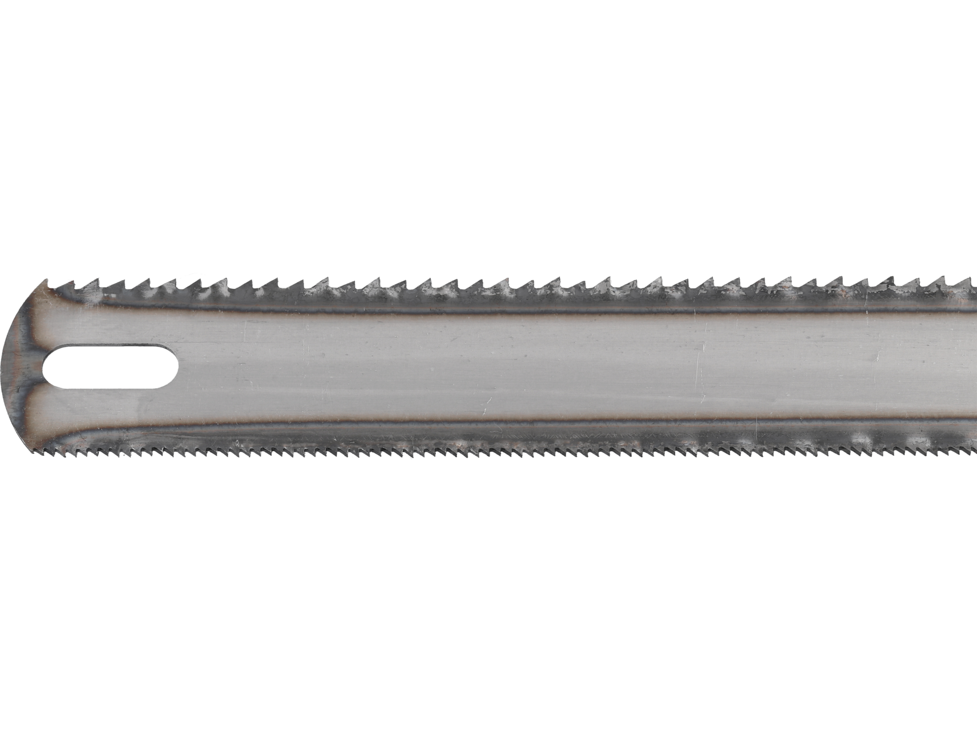 Dwustronna konstrukcja pozwala na wykorzystanie obu krawędzi tnących. Po zauważalnym stępieniu jednej strony należy poluzować napięcie, obrócić brzeszczot o 180 stopni i ponownie napiąć w ramie.