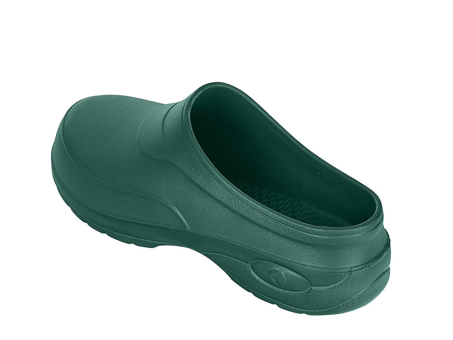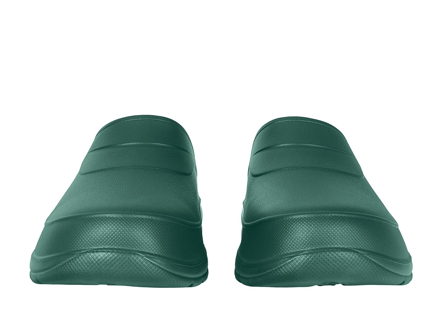 Ergonomiczna konstrukcja dobrze dopasowuje się do kształtu stopy, a zabudowany przód chroni palce przed drobnymi urazami i zabrudzeniami. Antypoślizgowa podeszwa z wyraźnym bieżnikiem zapewnia dobrą przyczepność do podłoża, zwiększając bezpieczeństwo pracy. Jednolita, łatwa do czyszczenia powierzchnia sprawia, że chodaki doskonale sprawdzają się w środowiskach, gdzie liczy się higiena i szybkie utrzymanie obuwia w czystości.