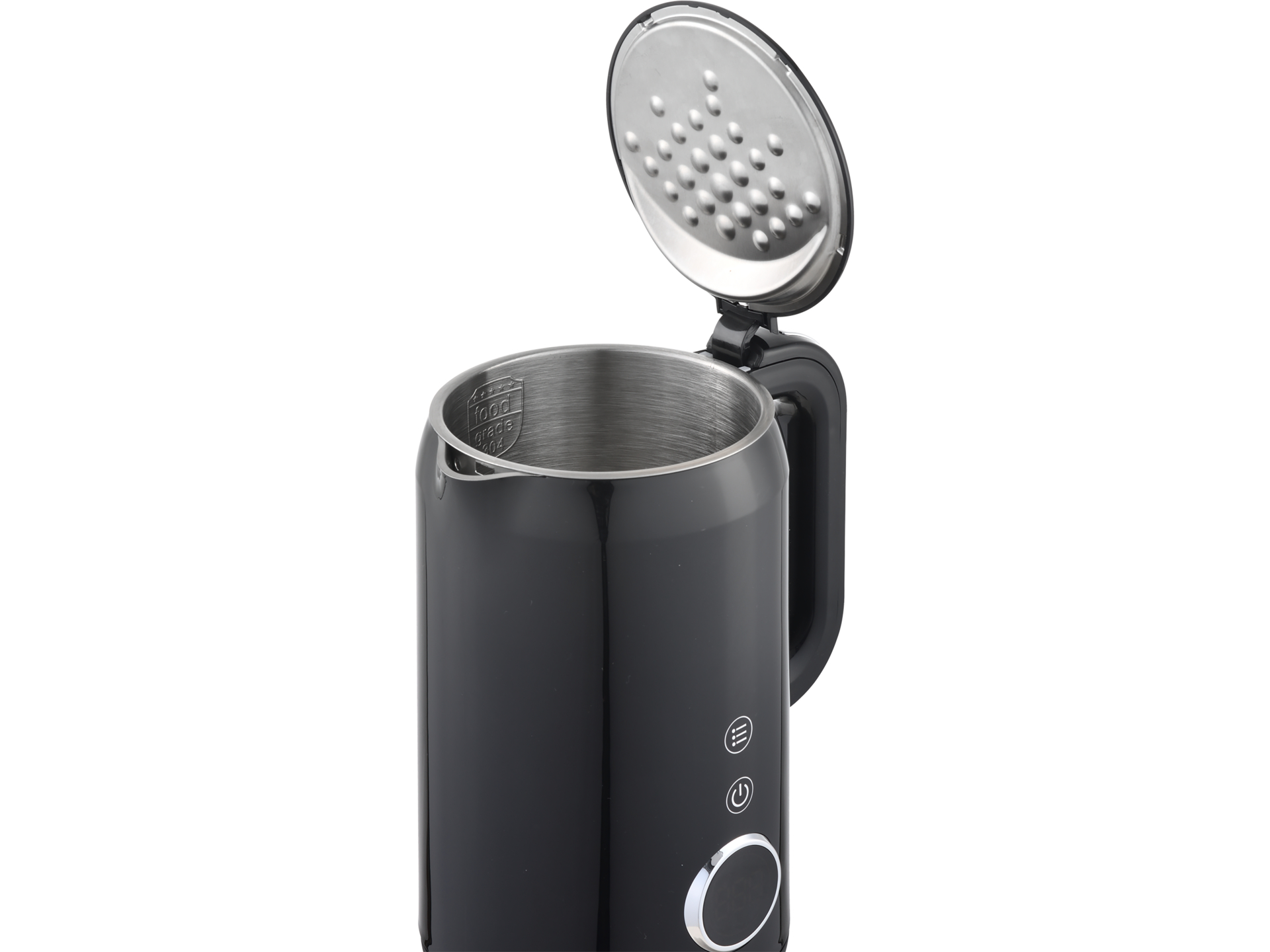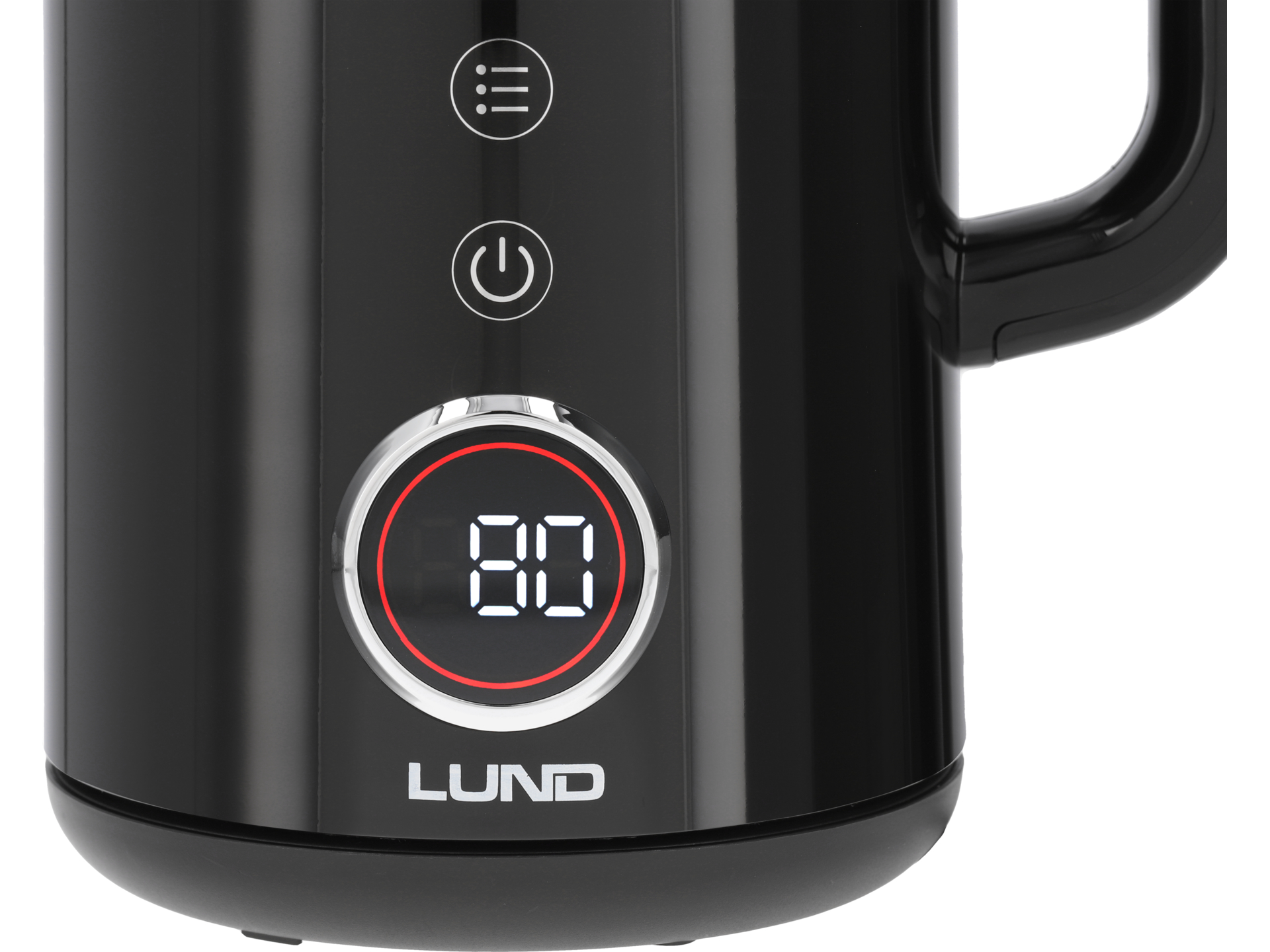 Wyświetlacz pokazuje aktualną temperaturę wody w czasie rzeczywistym. Obręcz LED zmienia kolor w zależności od osiągniętej temperatury, co pozwala na wizualną kontrolę procesu podgrzewania bez konieczności sprawdzania wyświetlacza. Urządzenie sygnalizuje dźwiękowo osiągnięcie zadanej temperatury.