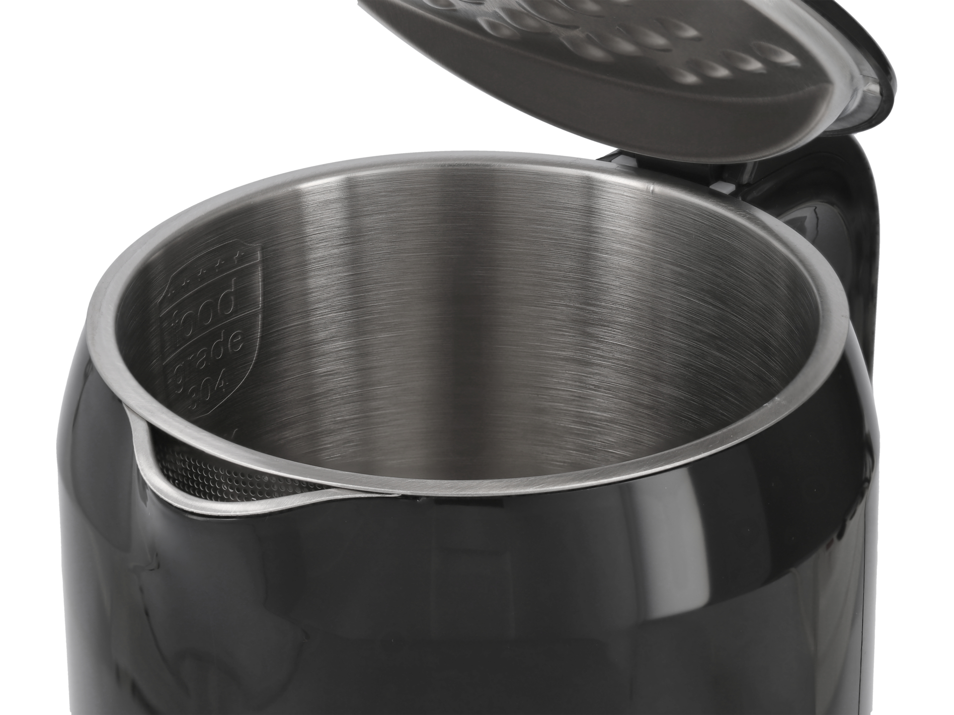 Szeroki wlew i system otwierania pokrywki ułatwiają napełnianie i czyszczenie zbiornika. Wyjmowany filtr siateczkowy zatrzymuje drobne cząstki kamienia i zanieczyszczeń – należy go regularnie płukać pod bieżącą wodą. Obrotowa podstawa 360° umożliwia wygodne ustawianie czajnika niezależnie od strony dominującej ręki, a schowek na przewód pozwala na estetyczne przechowywanie urządzenia.