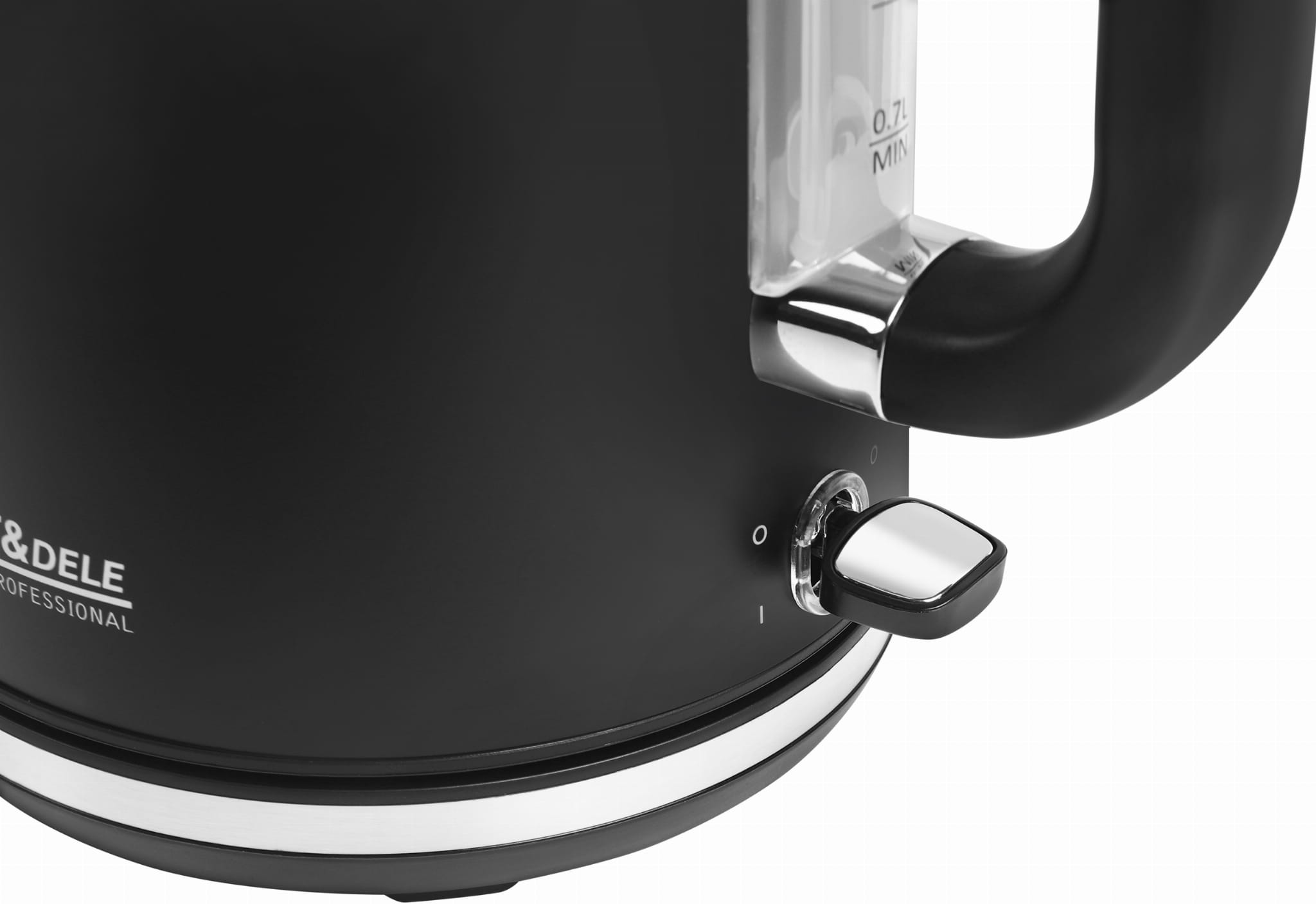 Zdejmowana pokrywa ułatwia napełnianie dzbanuszka i dostęp do wnętrza podczas czyszczenia lub odkamieniania. Obrotowa podstawa 360° umożliwia odstawienie i podniesienie czajnika z dowolnej strony, co jest szczególnie praktyczne przy ograniczonej przestrzeni roboczej.