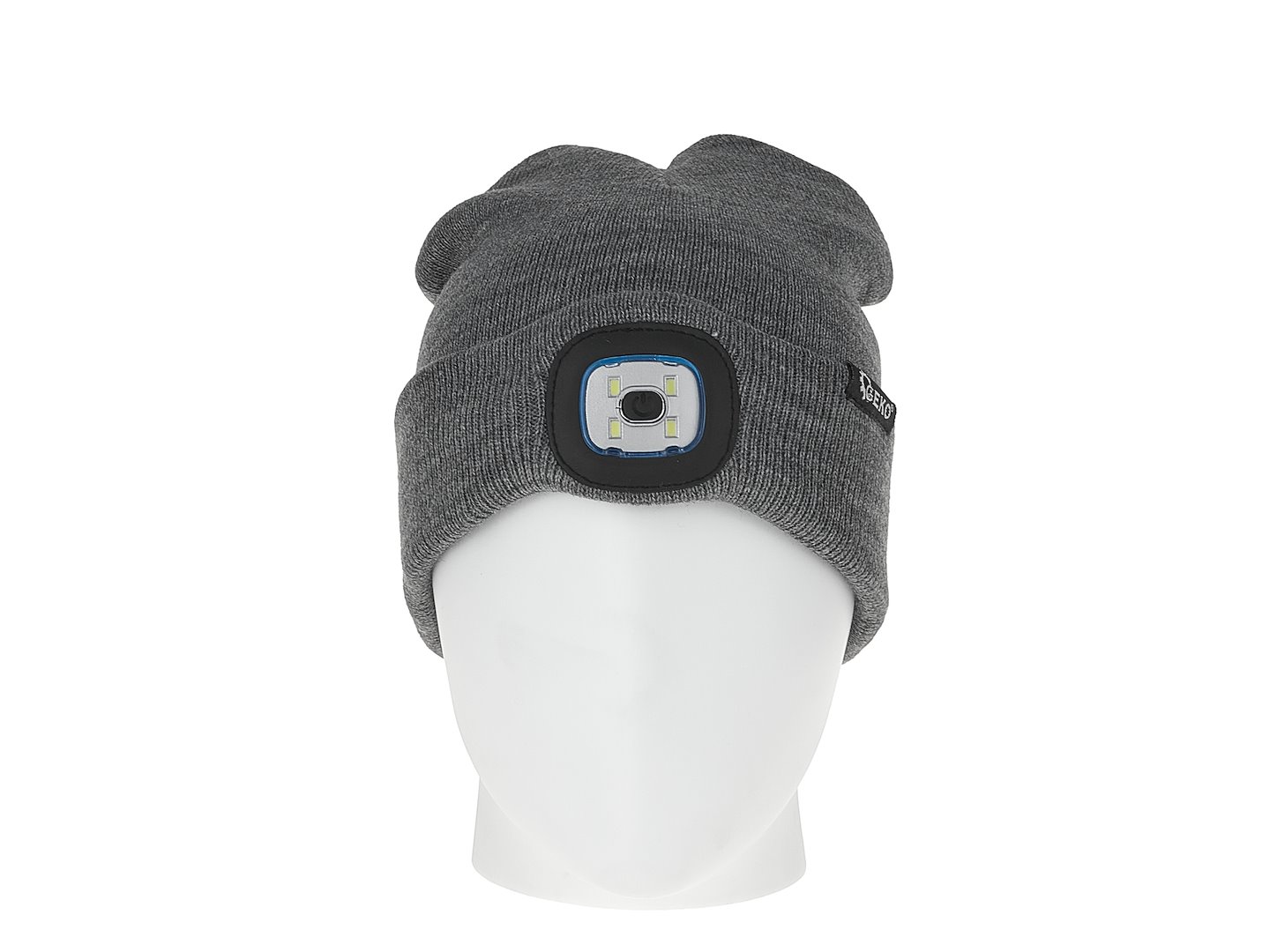 Czapka zimowa wykonana z akrylowej dzianiny z wbudowanym modułem oświetleniowym LED o strumieniu świetlnym 150 lumenów. Lampka zasilana jest z wbudowanego akumulatora ładowanego przez złącze USB, a jej konstrukcja umożliwia wyjęcie modułu przed praniem czapki.