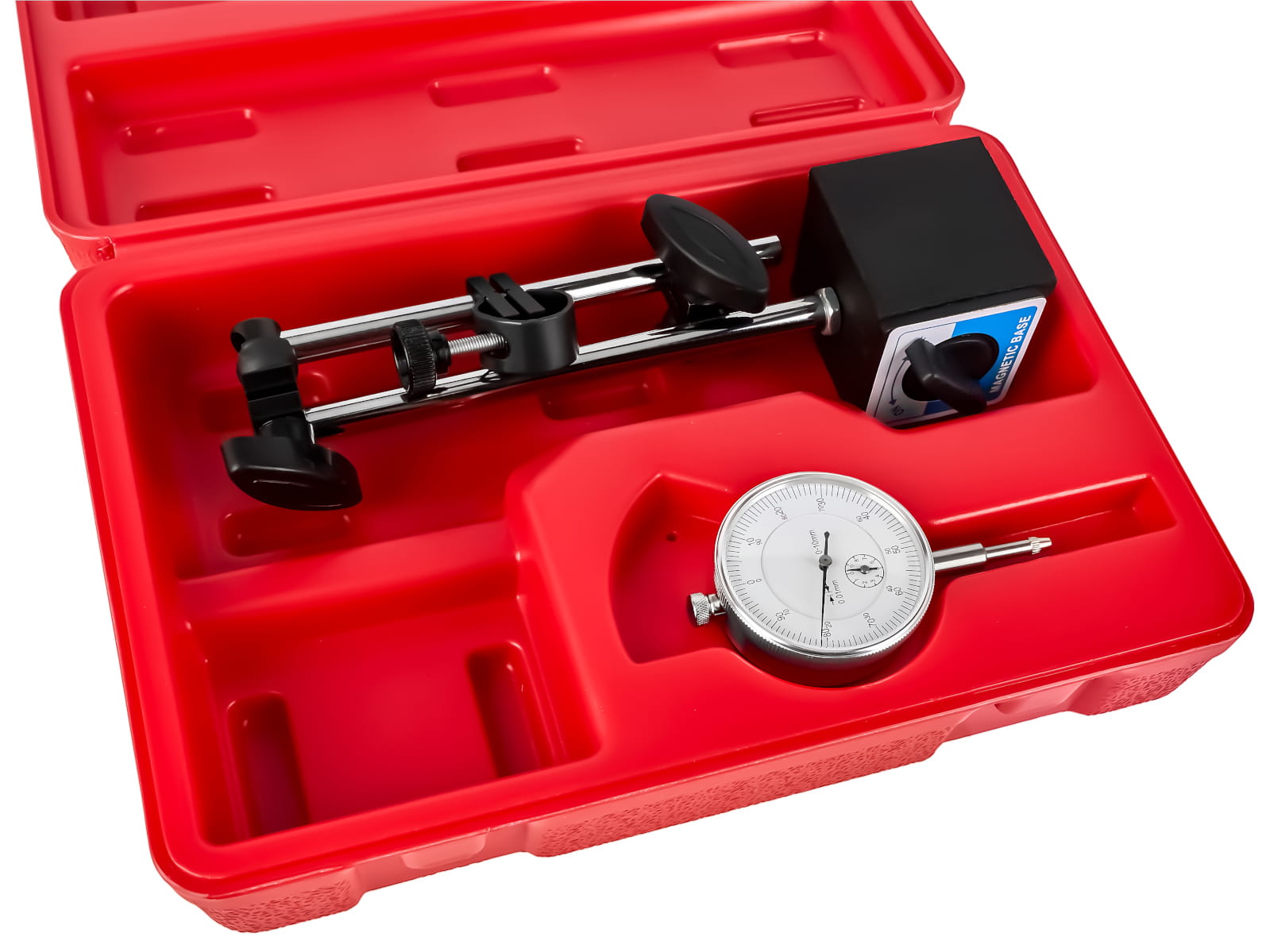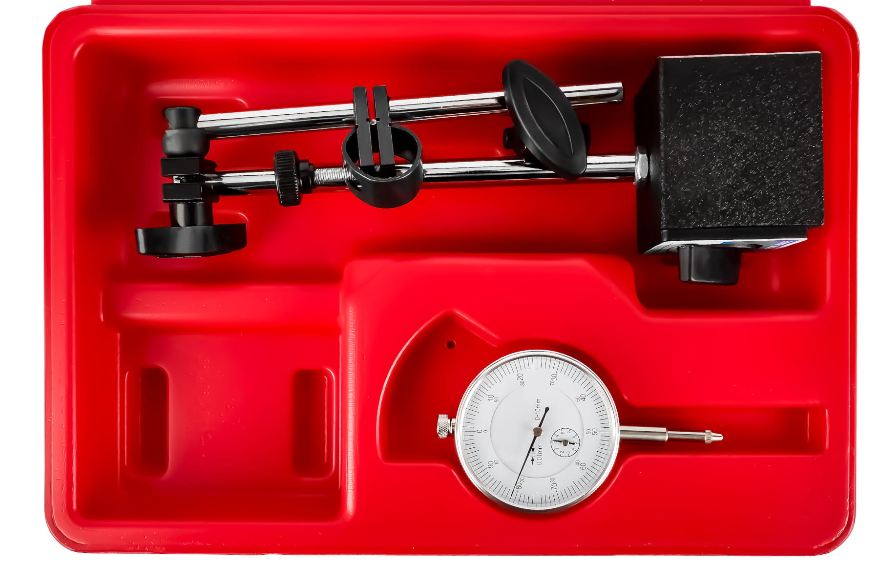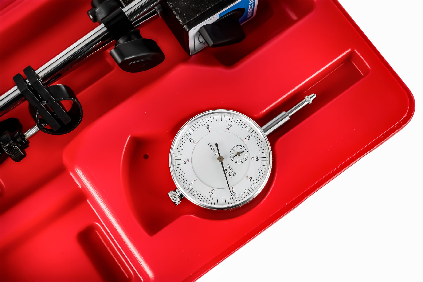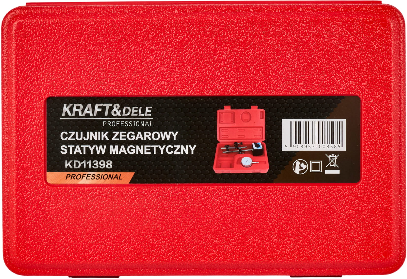 Czujnik zegarowy KD11398 to kompletny zestaw pomiarowy składający się z czujnika zegarowego i statywu na podstawie magnetycznej. Służy do kontroli odchyłek geometrycznych elementów mechanicznych — bicia, współosiowości, płaskości i poprawności montażu — w warunkach warsztatowych i produkcyjnych.