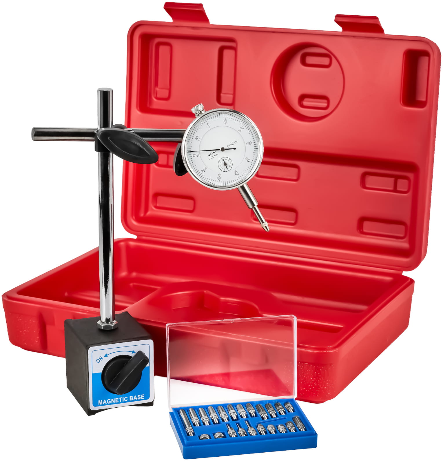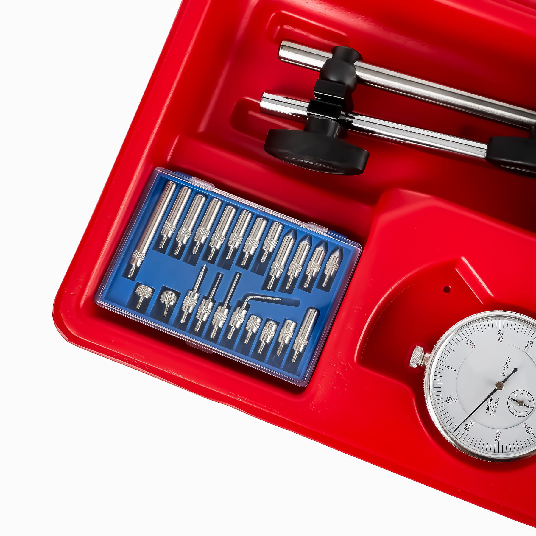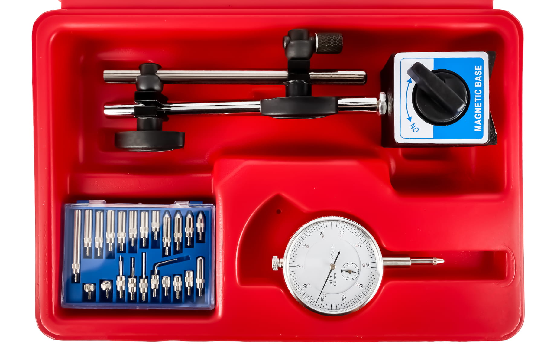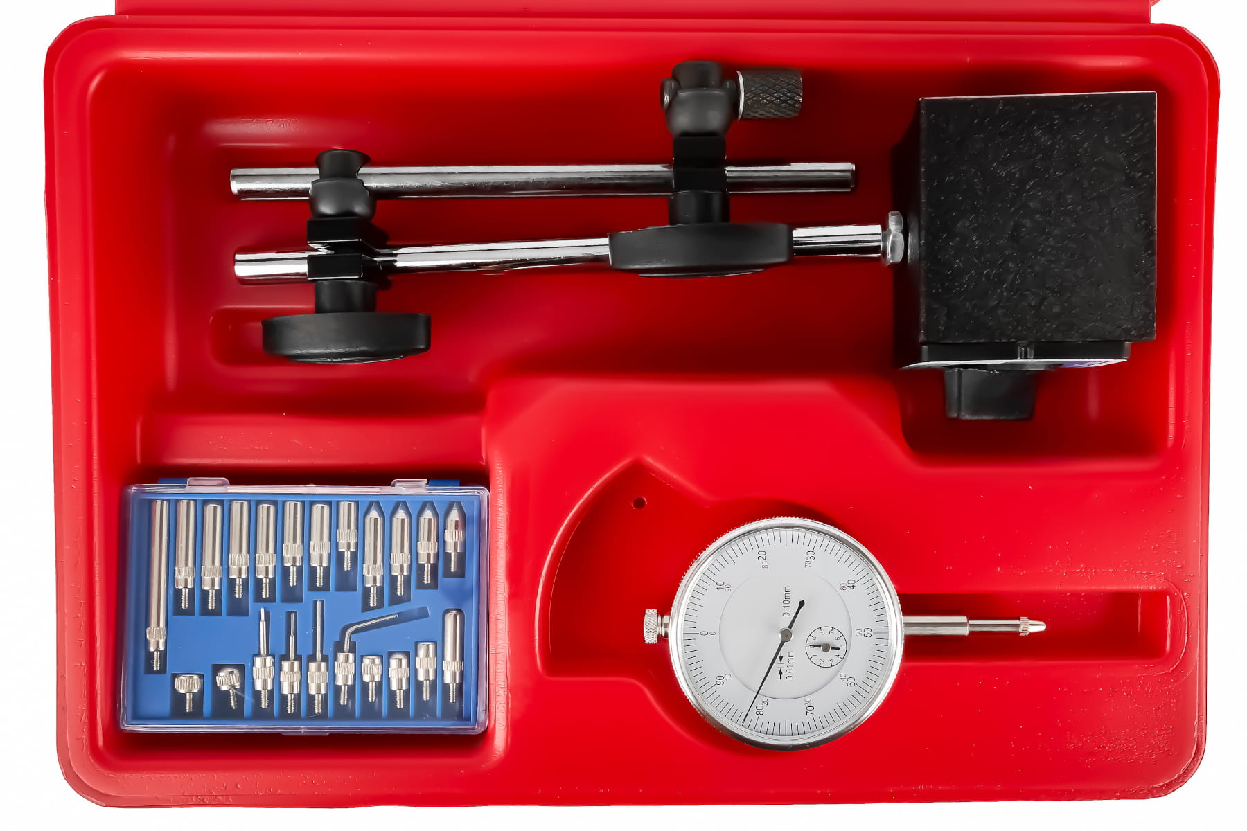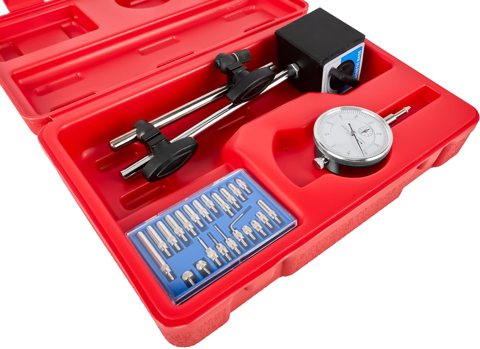 KD11291 to kompletny zestaw do precyzyjnych pomiarów liniowych, składający się z czujnika zegarowego o zakresie 0–10 mm, statywu magnetycznego z przegubowym ramieniem oraz 22 wymiennych końcówek pomiarowych. Zestaw przeznaczony jest do pracy warsztatowej i przemysłowej, gdzie wymagane jest powtarzalne mierzenie odchyleń, bicia i geometrii elementów mechanicznych.