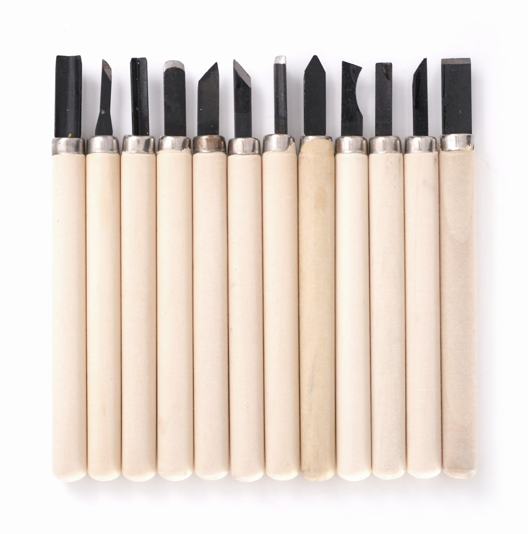 12 elementów w różnych rozmiarach i kształtach pozwala realizować pełen zakres podstawowych operacji rzeźbiarskich bez konieczności dokupowania dodatkowych narzędzi na etapie nauki lub prac amatorskich.