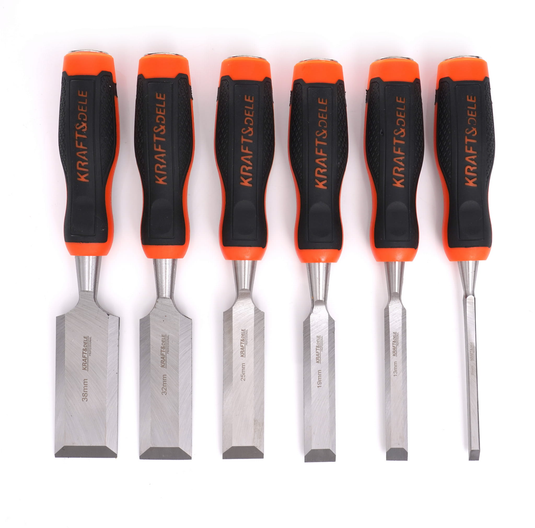 Komplet zawiera dłuta o szerokościach 6, 13, 19, 25, 32 i 38 mm. Taki dobór pozwala dopasować narzędzie do rowków wpustowych, czopów, gniazd zawiasów i innych elementów konstrukcji drewnianych.