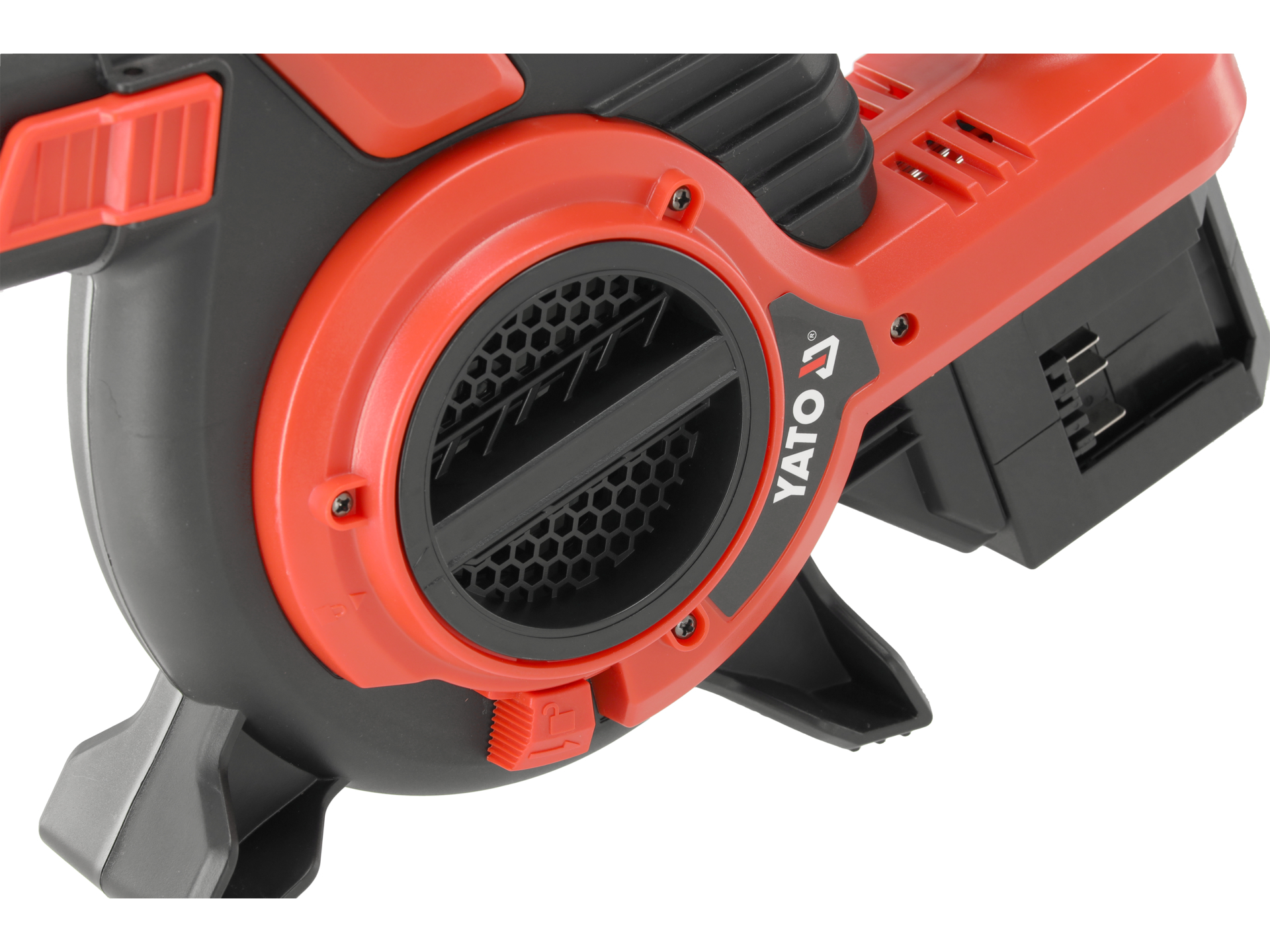 Urządzenie wymaga dwóch akumulatorów 18V Li-Ion oraz ładowarki, które nie są dołączone do zestawu. Należy sprawdzić zgodność z systemem akumulatorowym YATO przed zakupem. Czas pracy zależy od pojemności użytych akumulatorów (wyrażonej w Ah) oraz intensywności obciążenia – tryb dmuchawy przy maksymalnych obrotach zużywa więcej energii niż praca przy niskich obrotach.