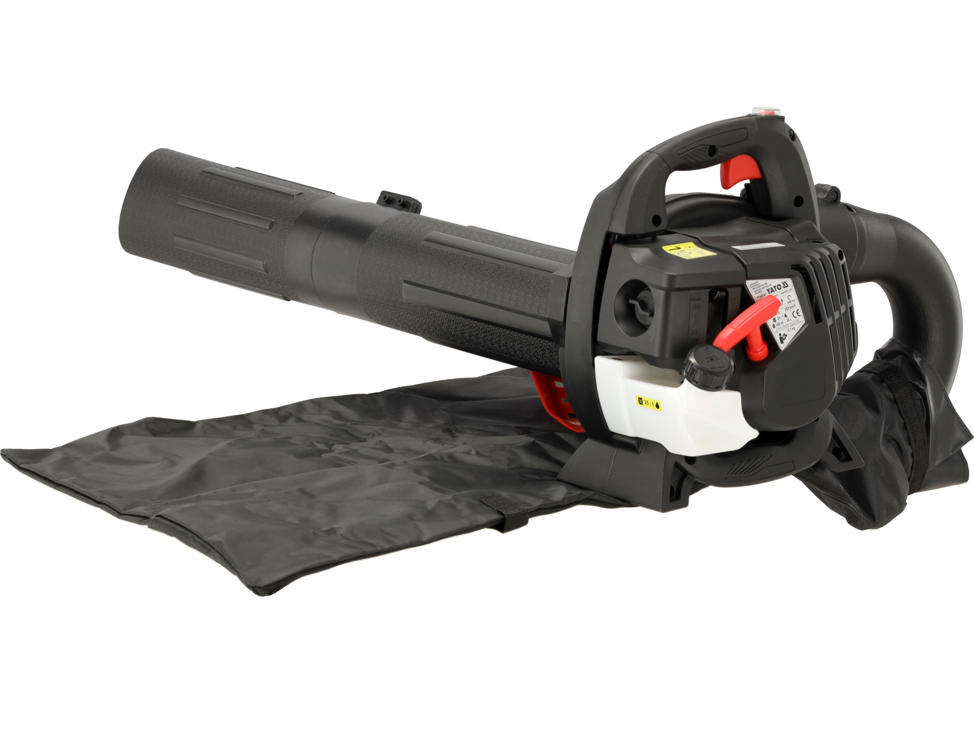 Spalinowa dmuchawa YATO YT-85191 to wielofunkcyjne urządzenie łączące funkcje dmuchawy, odkurzacza i rozdrabniacza. Napędzana dwusuwowym silnikiem o pojemności 25,4 cm³, generuje strumień powietrza o prędkości do 252 km/h przy wydajności 540 m³/min. Wyposażona w worek o pojemności 35 litrów do zbierania rozdrobnionych odpadów.