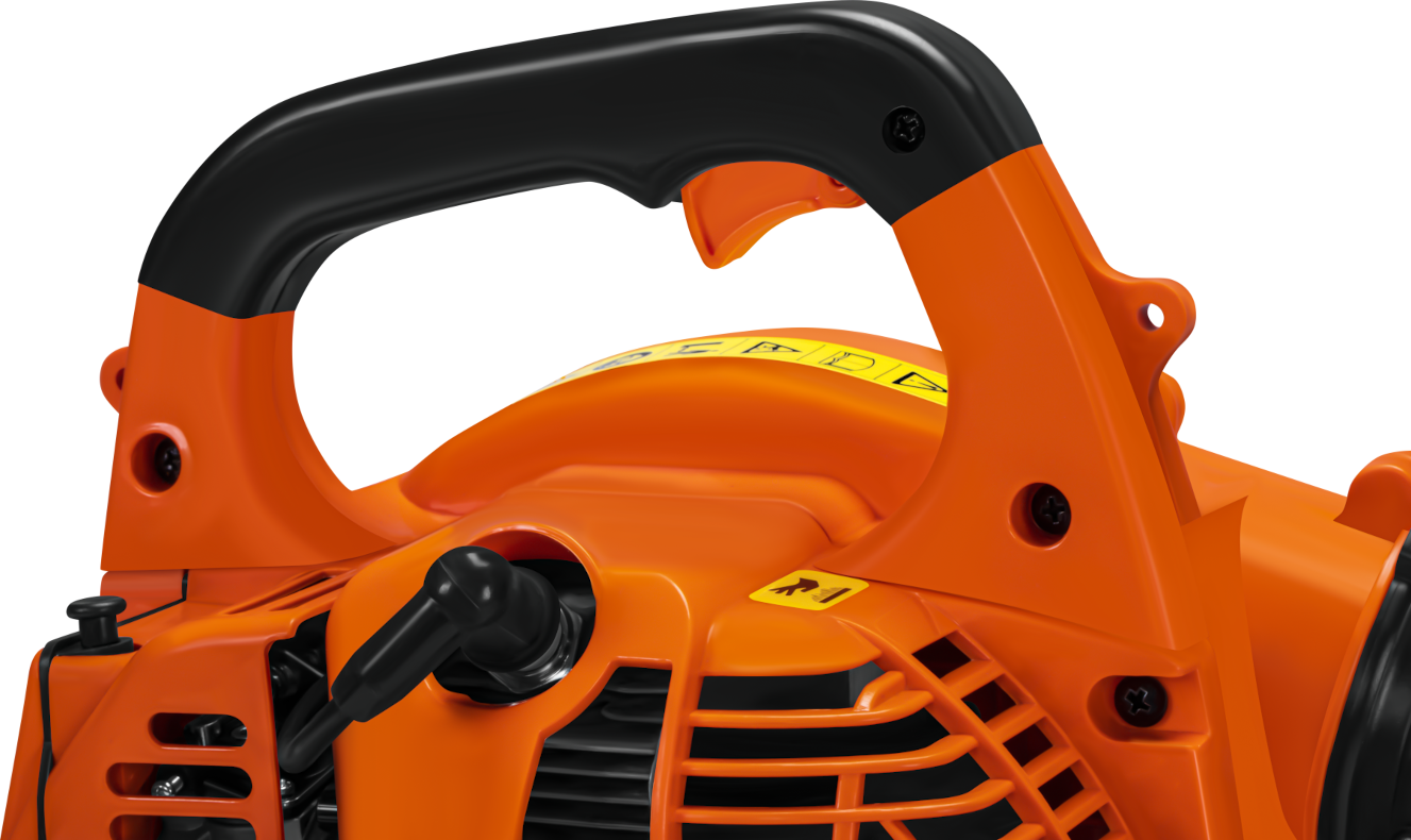 Pompka membranowa w gaźniku umożliwia poprawne dozowanie paliwa niezależnie od kąta nachylenia urządzenia. Dzięki temu silnik pracuje stabilnie zarówno podczas skierowania dyszy w dół, jak i w górę, bez ryzyka zalewania komory spalania.