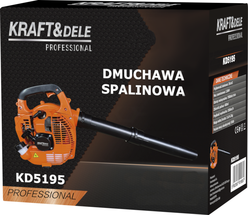 KD5195 to ręczna dmuchawa spalinowa z silnikiem dwusuwowym o pojemności 26 cm³, przeznaczona do usuwania liści, skoszonej trawy i drobnych zanieczyszczeń z powierzchni utwardzonych oraz terenów zielonych. Praca bez zasilania sieciowego umożliwia swobodne użytkowanie w miejscach bez dostępu do prądu.