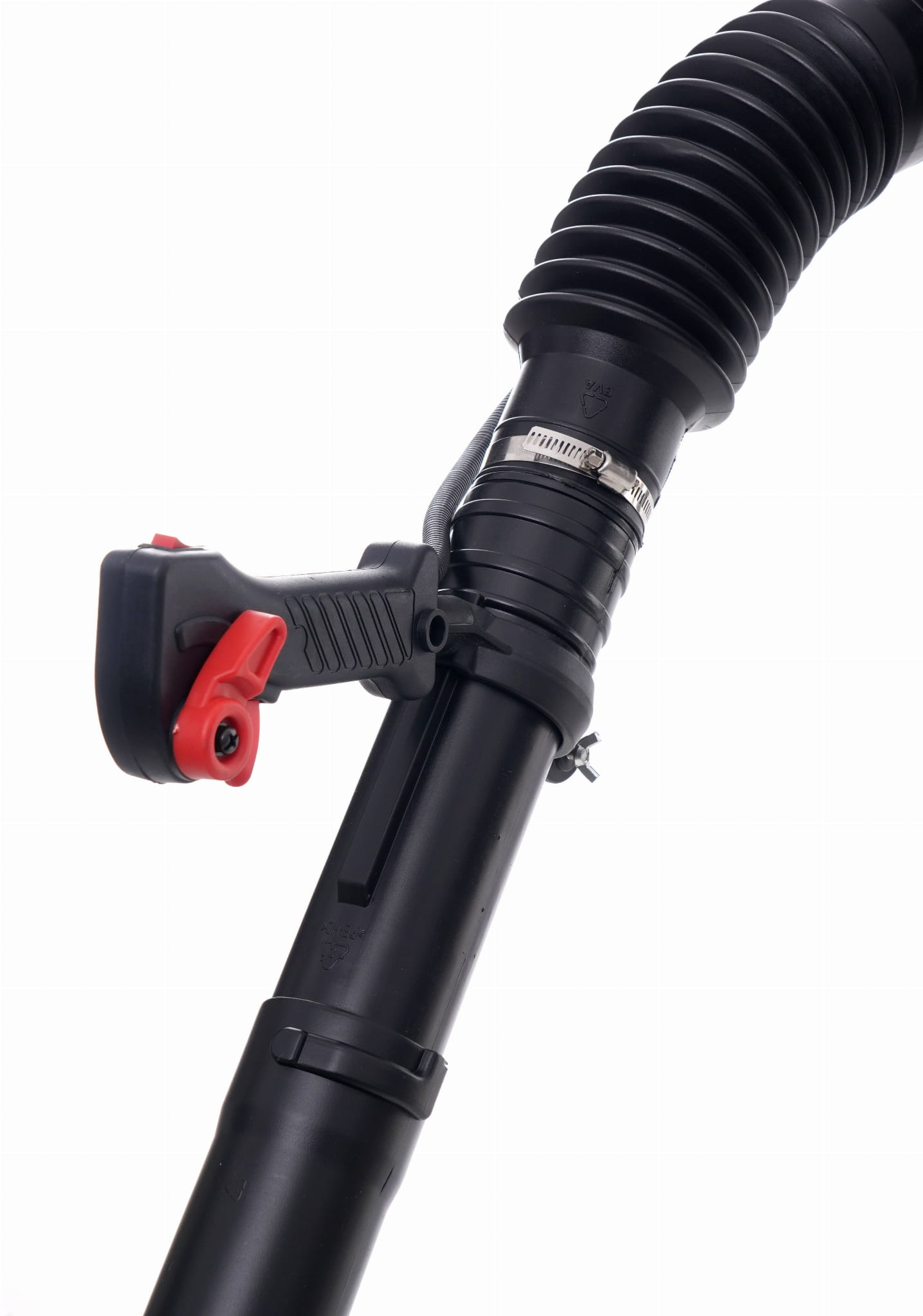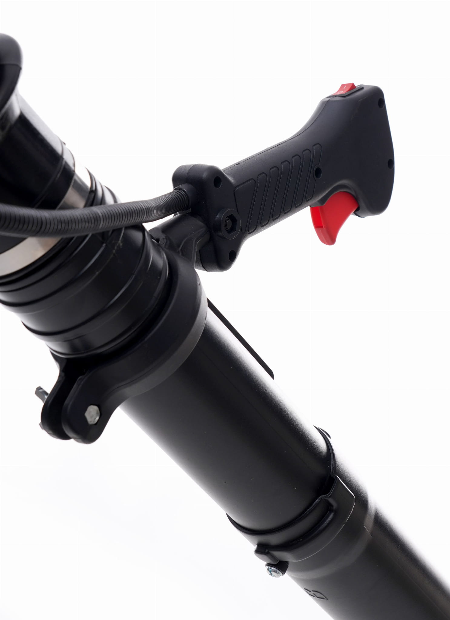 Główna rękojeść wykonana jest z materiału o podwyższonej przyczepności. Zmniejsza ryzyko wyślizgnięcia urządzenia z dłoni podczas pracy, szczególnie w warunkach wilgoci lub przy dłuższym użytkowaniu, gdy pojawia się zmęczenie mięśni.