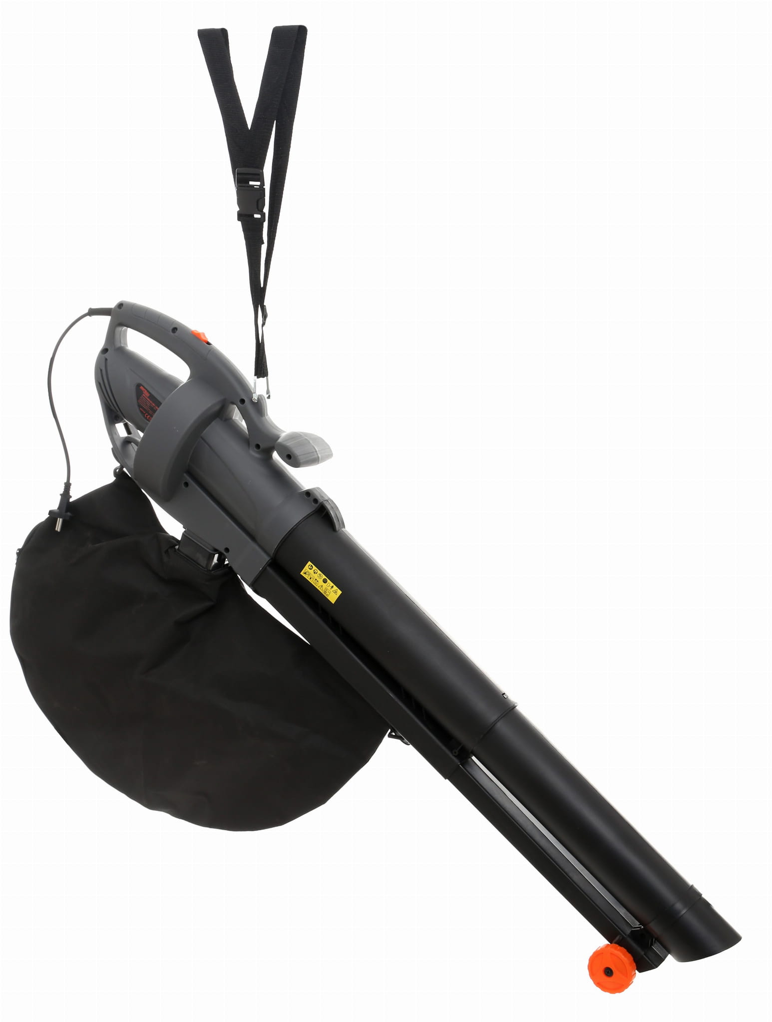 Przełącznik trybu pracy pozwala na zmianę funkcji urządzenia bez demontażu rury czy wymiany dysz. W trybie dmuchawy liście są zbierane w kupę, w trybie odkurzacza — zasysane bezpośrednio do worka z jednoczesnym rozdrobnieniem.