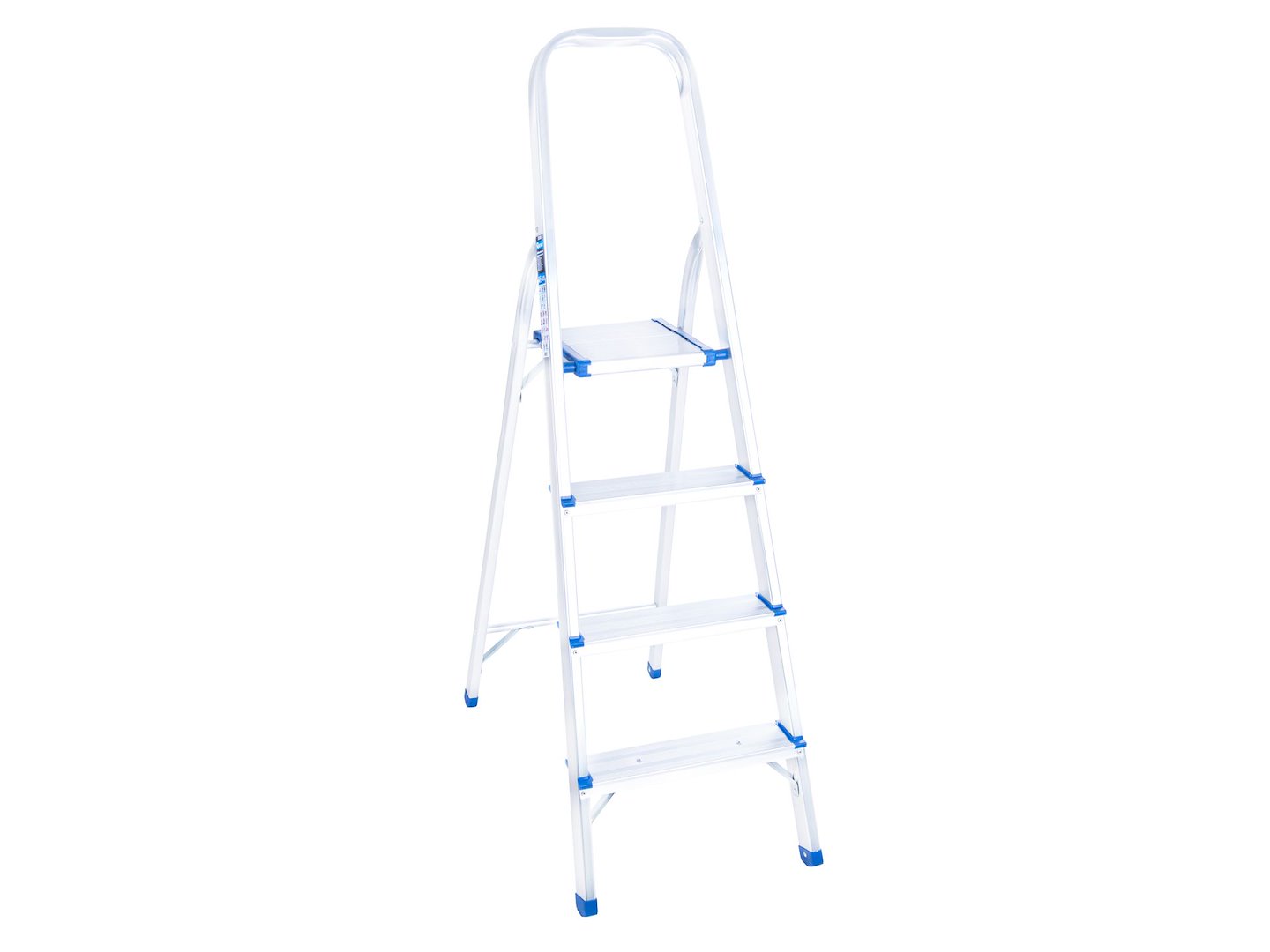 Jednostronna drabina składana z aluminium, przeznaczona do prac domowych i warsztatowych na wysokości do około 2,75 m. Konstrukcja z pałąkiem asekuracyjnym i stopkami antypoślizgowymi, o maksymalnym udźwigu 150 kg i wadze własnej 2,9 kg.