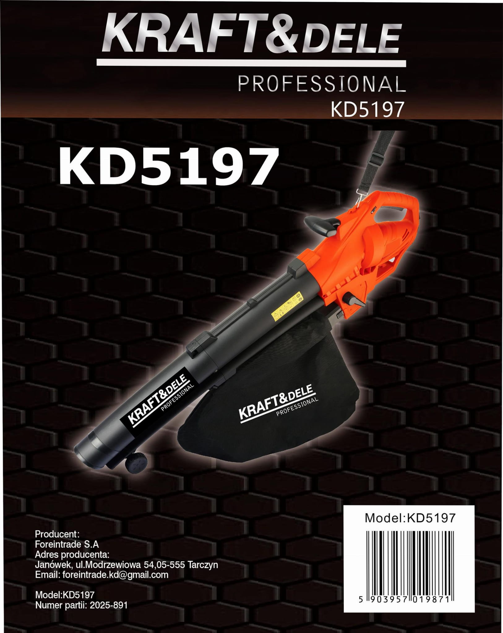 Elektryczna dmuchawa do liści KD5197, instrukcja obsługi w języku polskim, oryginalne opakowanie producenta.