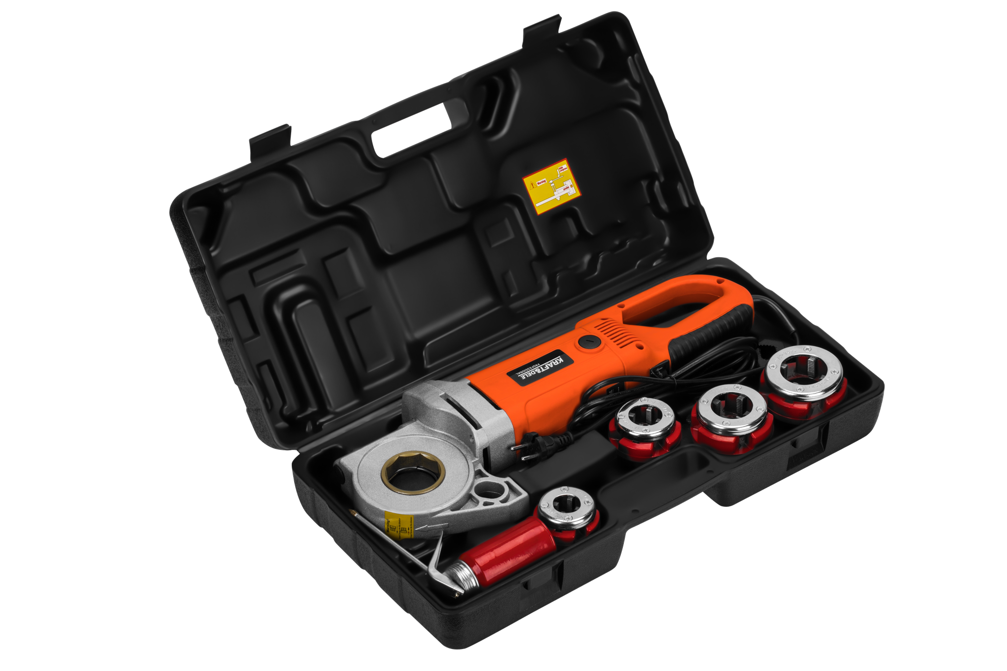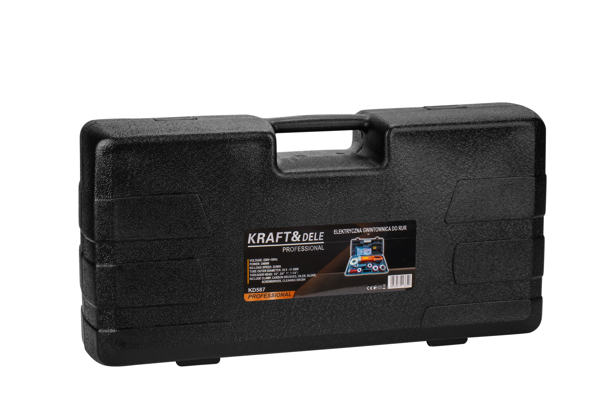 KD587 to przenośna elektryczna gwintownica przeznaczona do nacinania gwintów zewnętrznych na rurach stalowych i ocynkowanych w zakresie średnic 1/2"–1-1/4". Urządzenie pracuje na napięciu 230V i wyposażone jest w silnik z uzwojeniem miedzianym o mocy 2400W, co przekłada się na stabilną siłę napędową podczas pracy ciągłej.