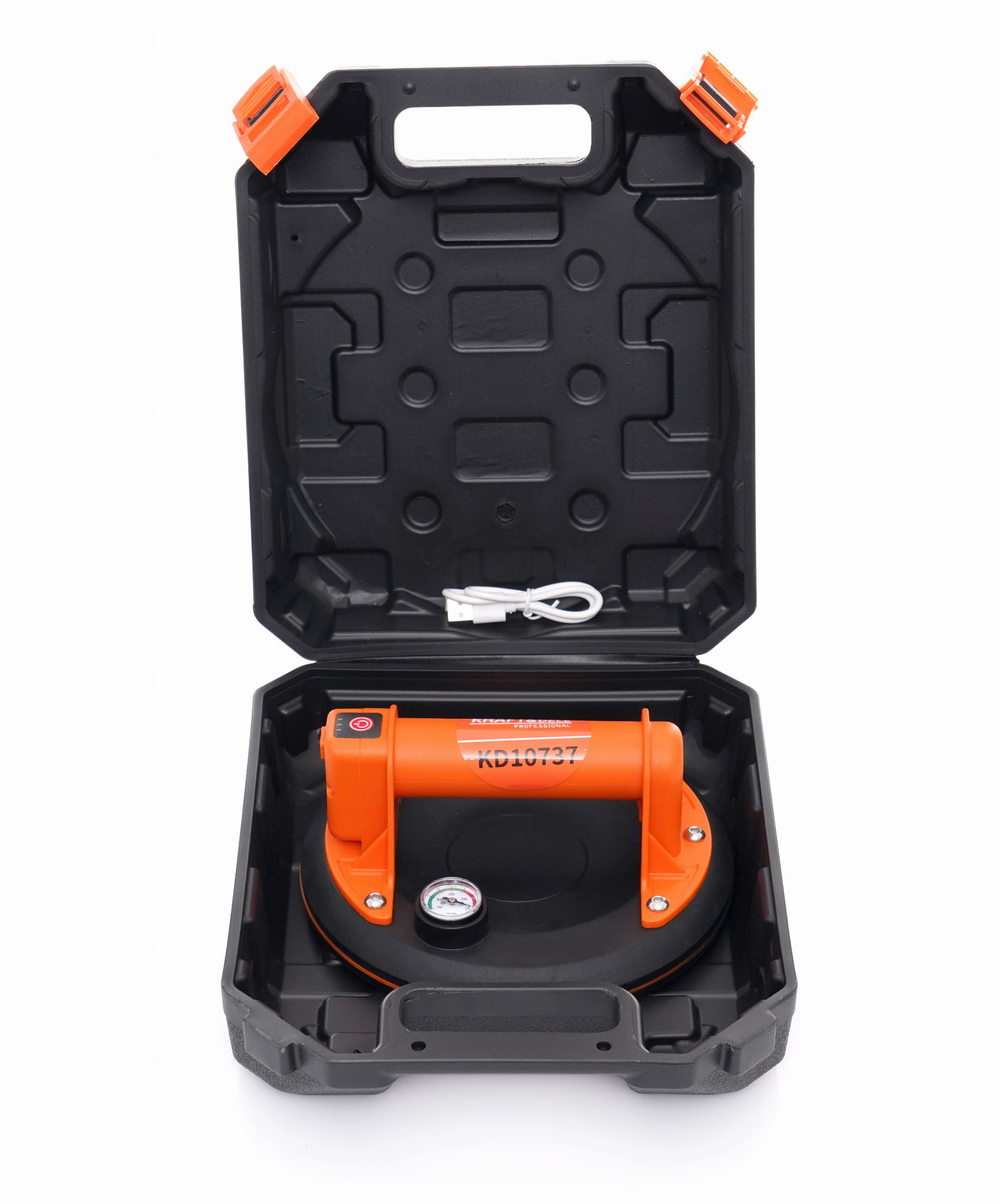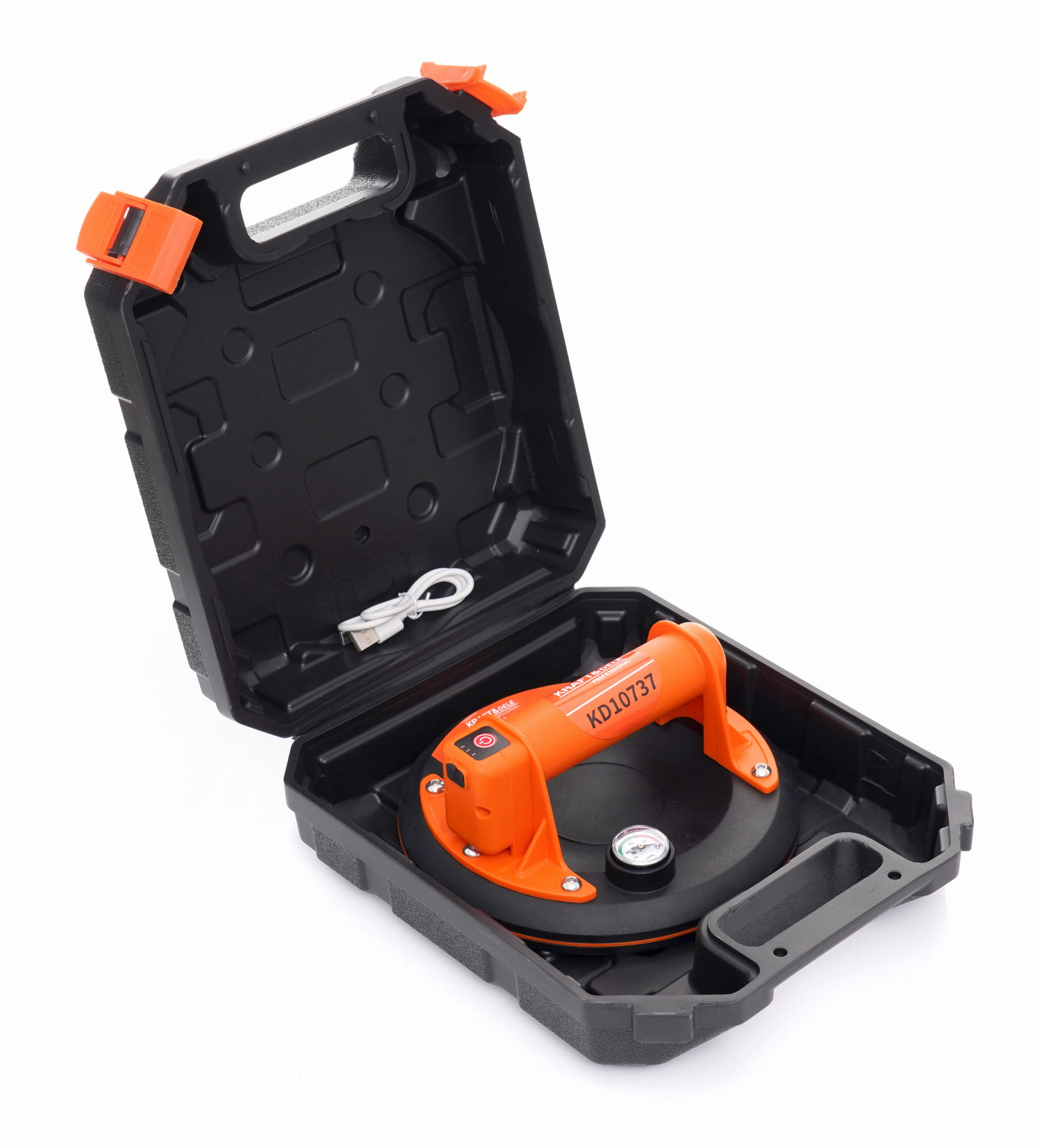 KD10737 to elektryczny chwytak próżniowy z automatycznym układem pompowania, przeznaczony do przenoszenia ciężkich elementów o gładkiej powierzchni — szyb, blach, laminatów i okien. Zasilanie akumulatorowe z ładowaniem przez USB-C zapewnia pełną mobilność bez konieczności dostępu do gniazdka sieciowego.