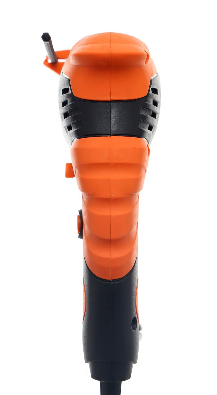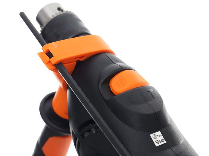 Materiał pokrycia rękojeści głównej zapewnia pewny chwyt nawet przy dłuższej pracy lub w rękawicach roboczych. Zmniejsza to ryzyko utraty kontroli nad narzędziem, szczególnie podczas wiercenia w twardych materiałach generujących duże opory.