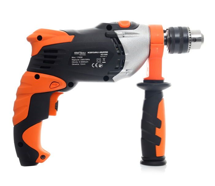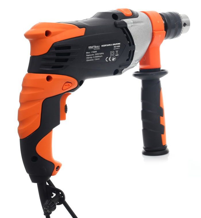 Elektryczna wiertarka udarowa 1700W KD1686 / KRAFT&DELE to rozsądny wybór, jeśli szukasz uniwersalnej wiertarki do prac w betonie i murze oraz do wiercenia w drewnie i metalu. Model KD1686 łączy funkcję udaru z dopracowaną ergonomią, dzięki czemu dobrze sprawdza się zarówno przy okazjonalnych, jak i częstszych zadaniach.