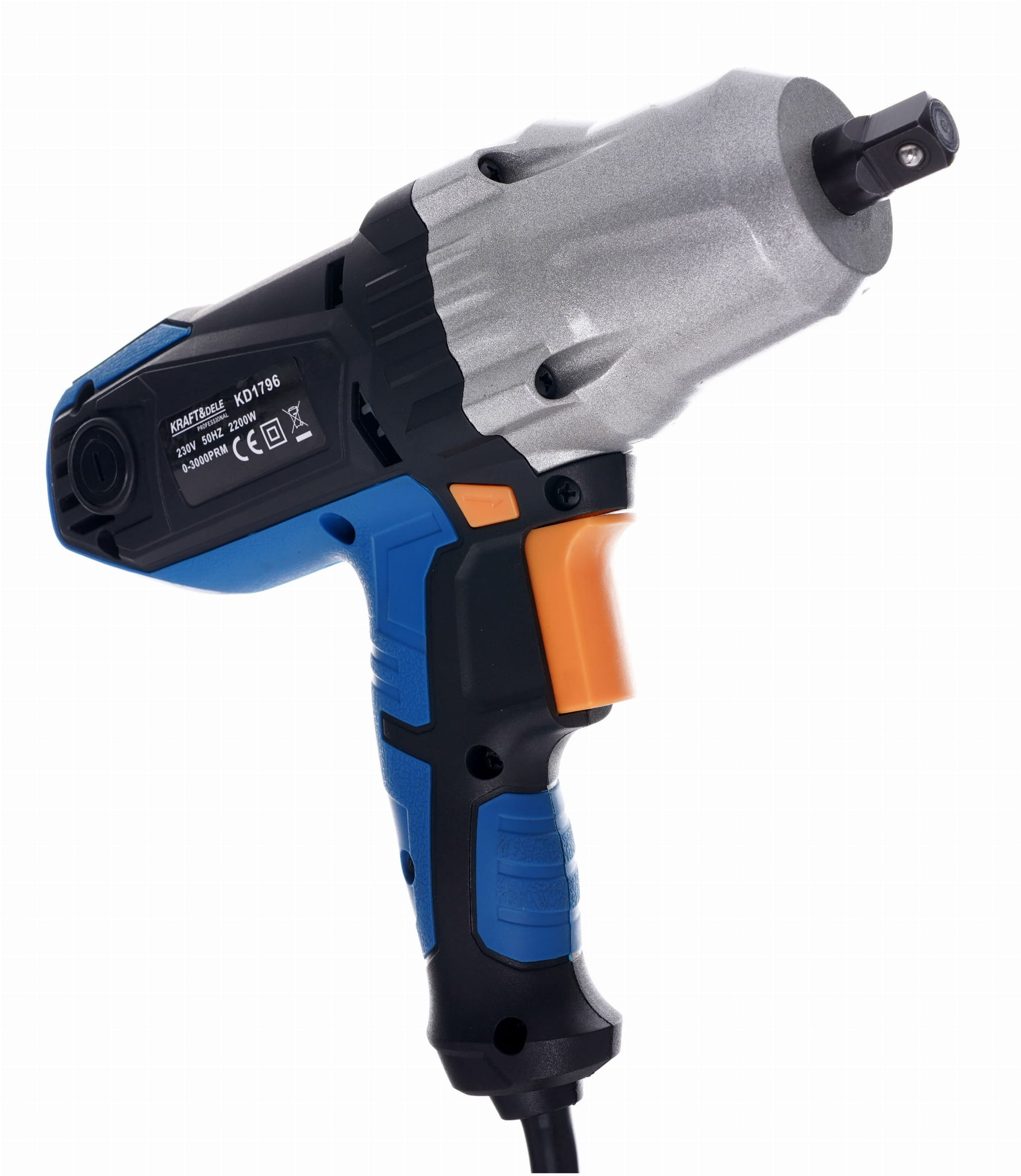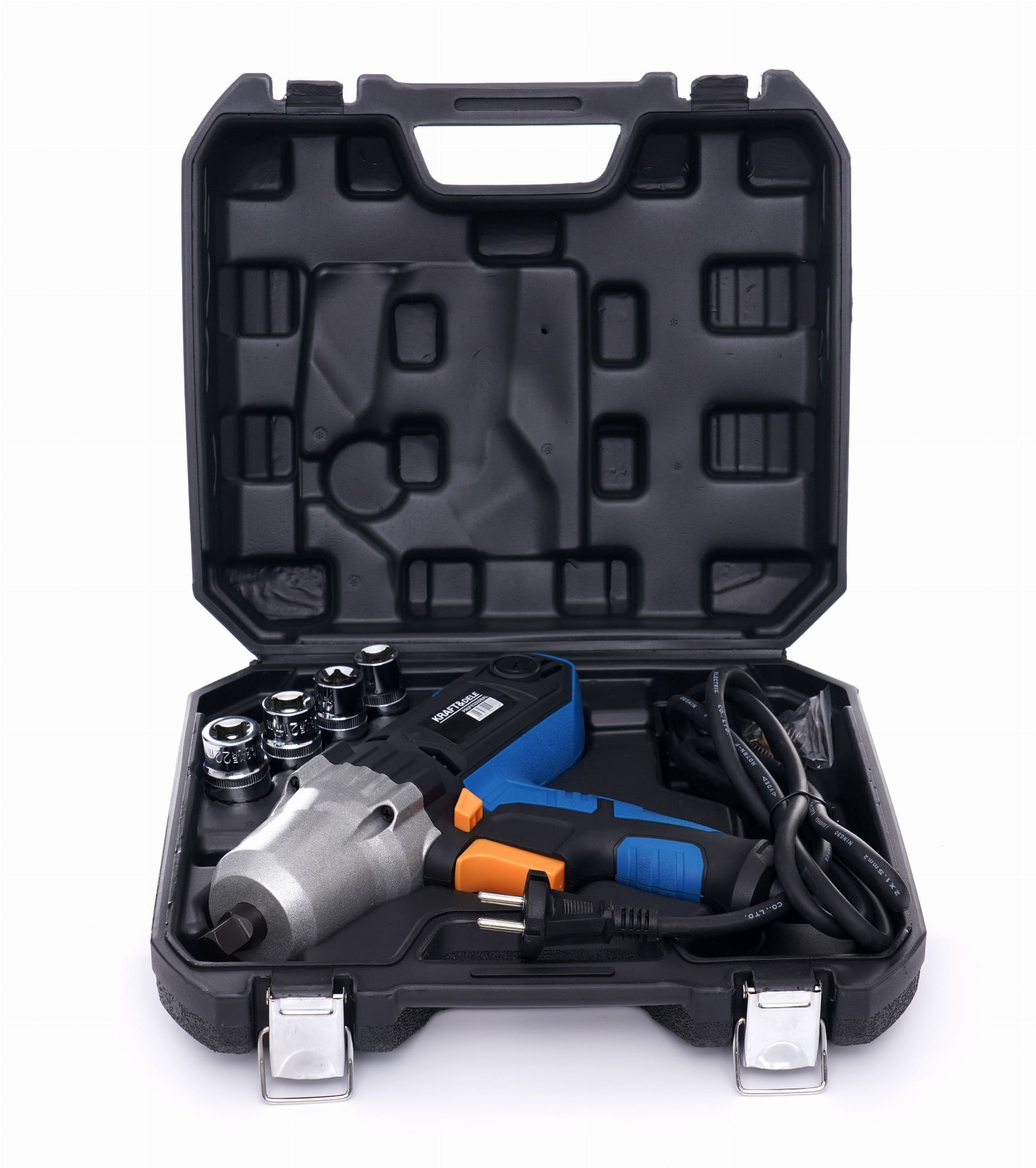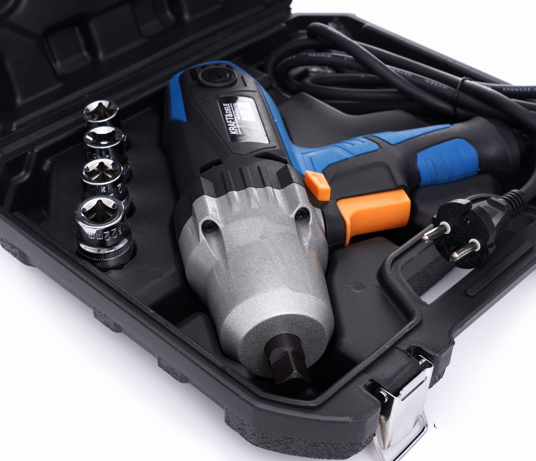 KD1796 to sieciowy klucz udarowy z kwadratowym napędem 1/2" przeznaczony do odkręcania i dokręcania śrub wymagających wysokiego momentu obrotowego. W zestawie znajdują się cztery nasadki o rozmiarach typowych przy pracach z układem jezdnym oraz walizka transportowa.