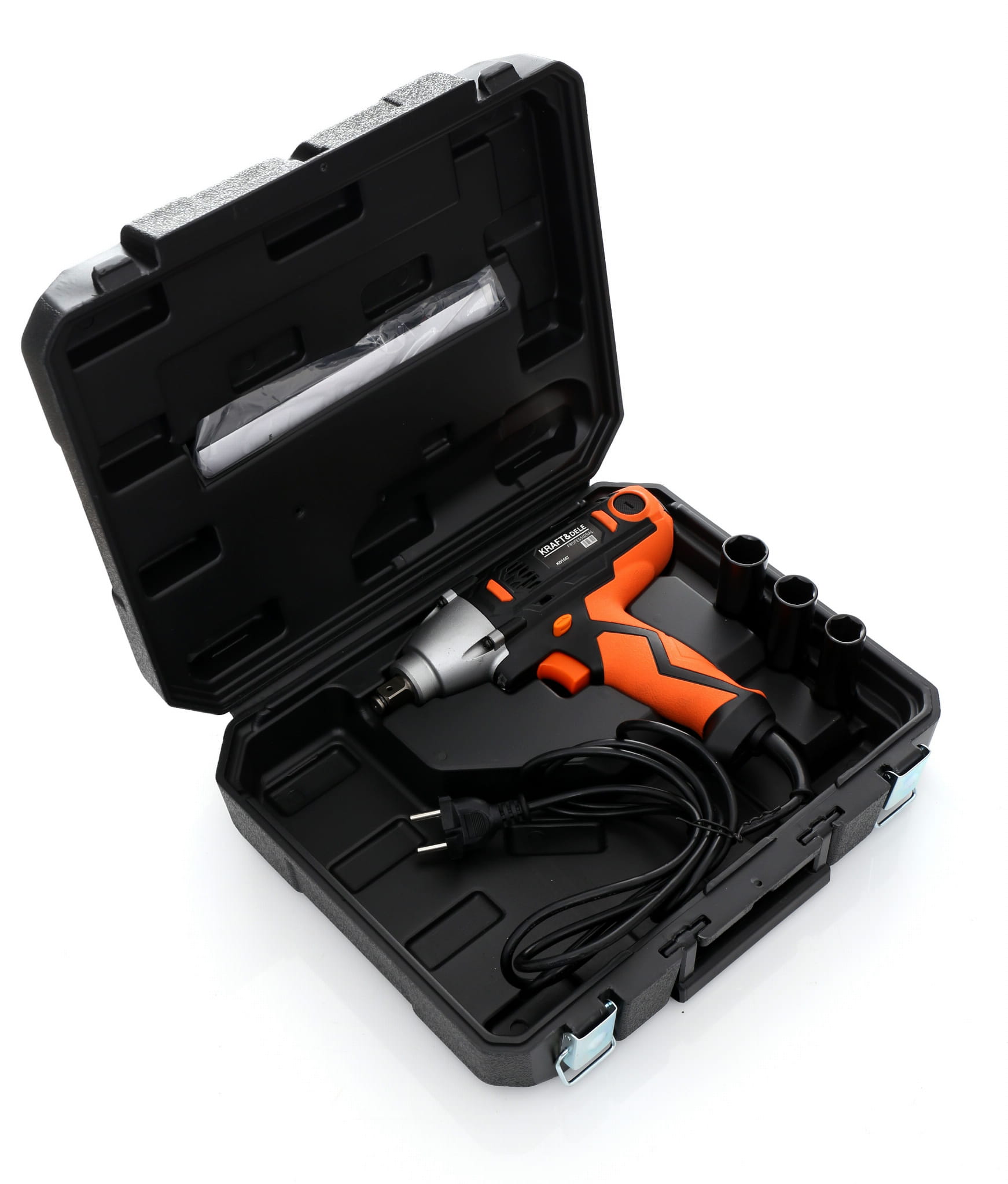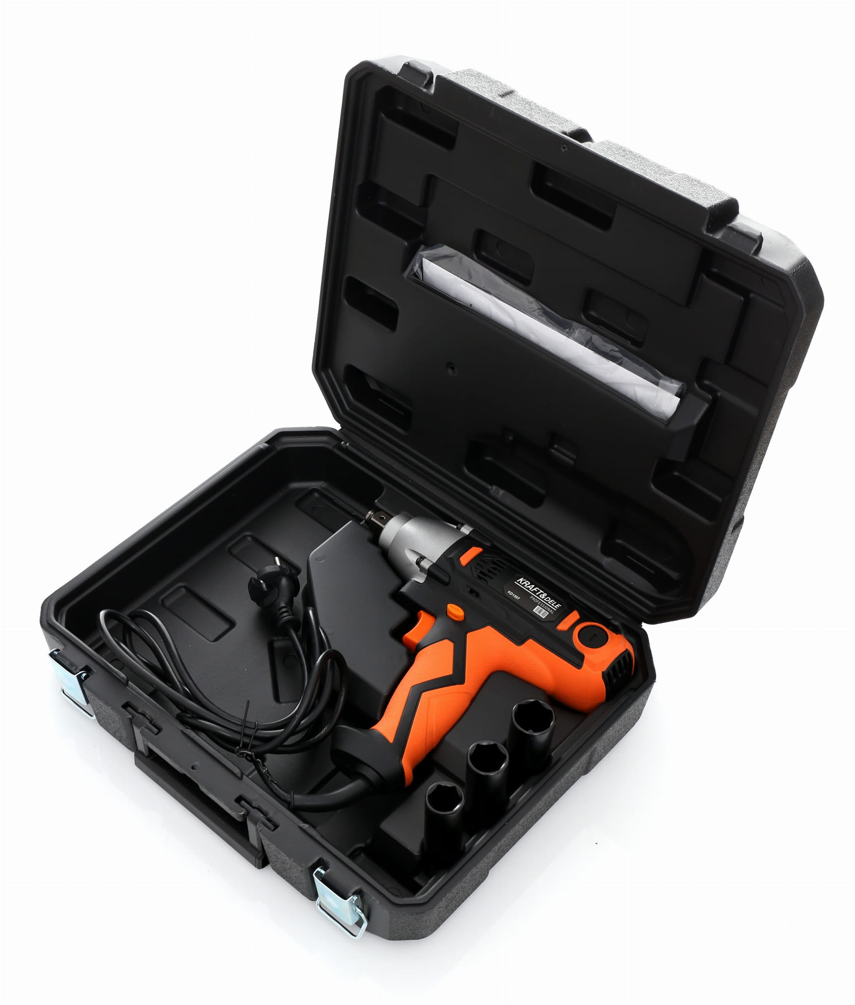 KD1557 to sieciowy klucz udarowy z napędem elektrycznym 2100W, przeznaczony do odkręcania i dokręcania śrub wymagających wysokiego momentu obrotowego. Trzpień 1/2" umożliwia stosowanie powszechnie dostępnych nasadek warsztatowych, a hartowana konstrukcja wrzeciona zapewnia odporność na obciążenia udarowe podczas intensywnej pracy.
