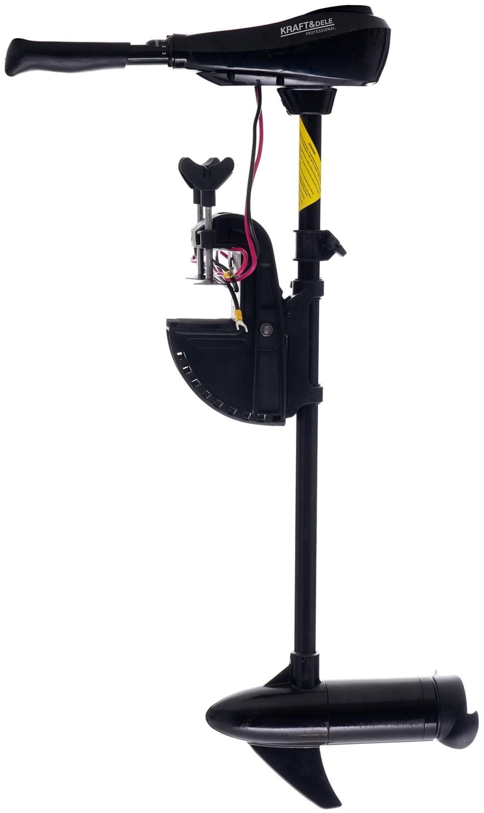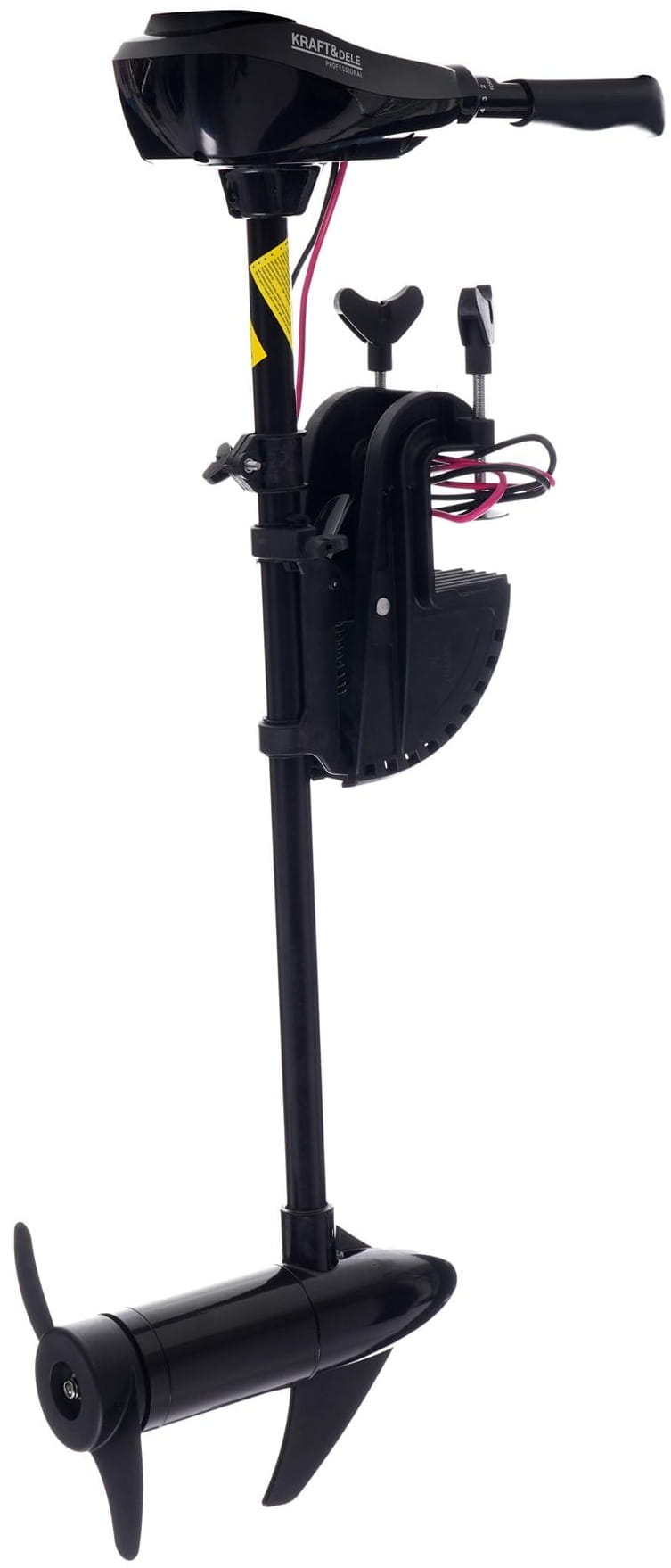 KD5306 to elektryczny silnik zaburtowy zasilany napięciem 12V, przeznaczony do pontonów i małych łodzi o obciążeniu do 2 osób. Urządzenie zapewnia siłę ciągu 40 lbs przy maksymalnej mocy 414 W, oferując 8-biegowy układ napędowy (5 do przodu, 3 wsteczne) oraz teleskopową rękojeść z regulacją długości.