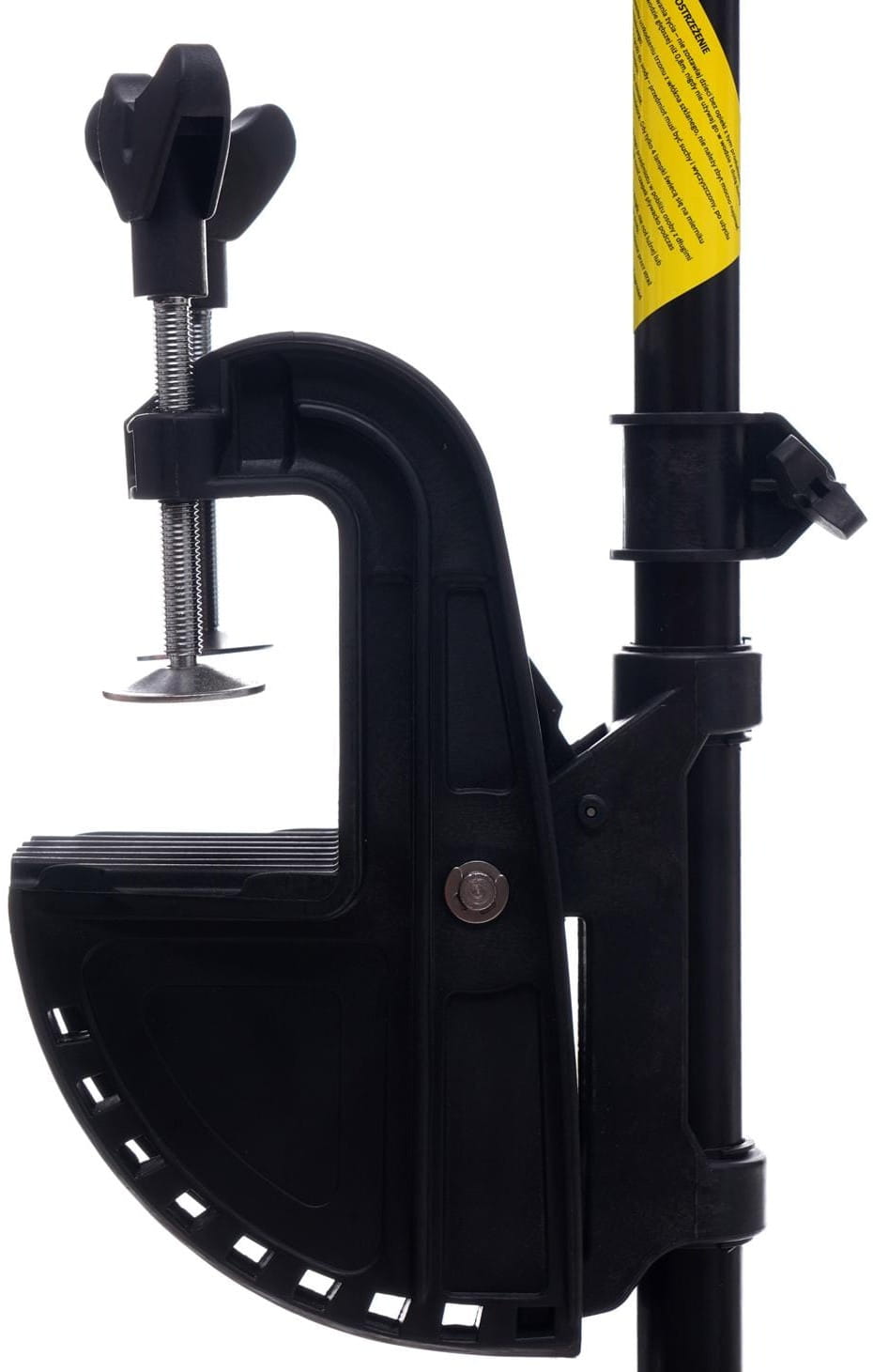 Silnik mocowany jest do burty za pomocą dołączonego uchwytu zaciskowego. Przed zakupem należy sprawdzić grubość burty lub transomu jednostki — uchwyt standardowo obsługuje grubości do ok. 50 mm. Wał o długości 76 cm jest odpowiedni dla pontonów i łodzi z niską burtą; przy wyższych kadłubach może być konieczny silnik z dłuższym wałem.