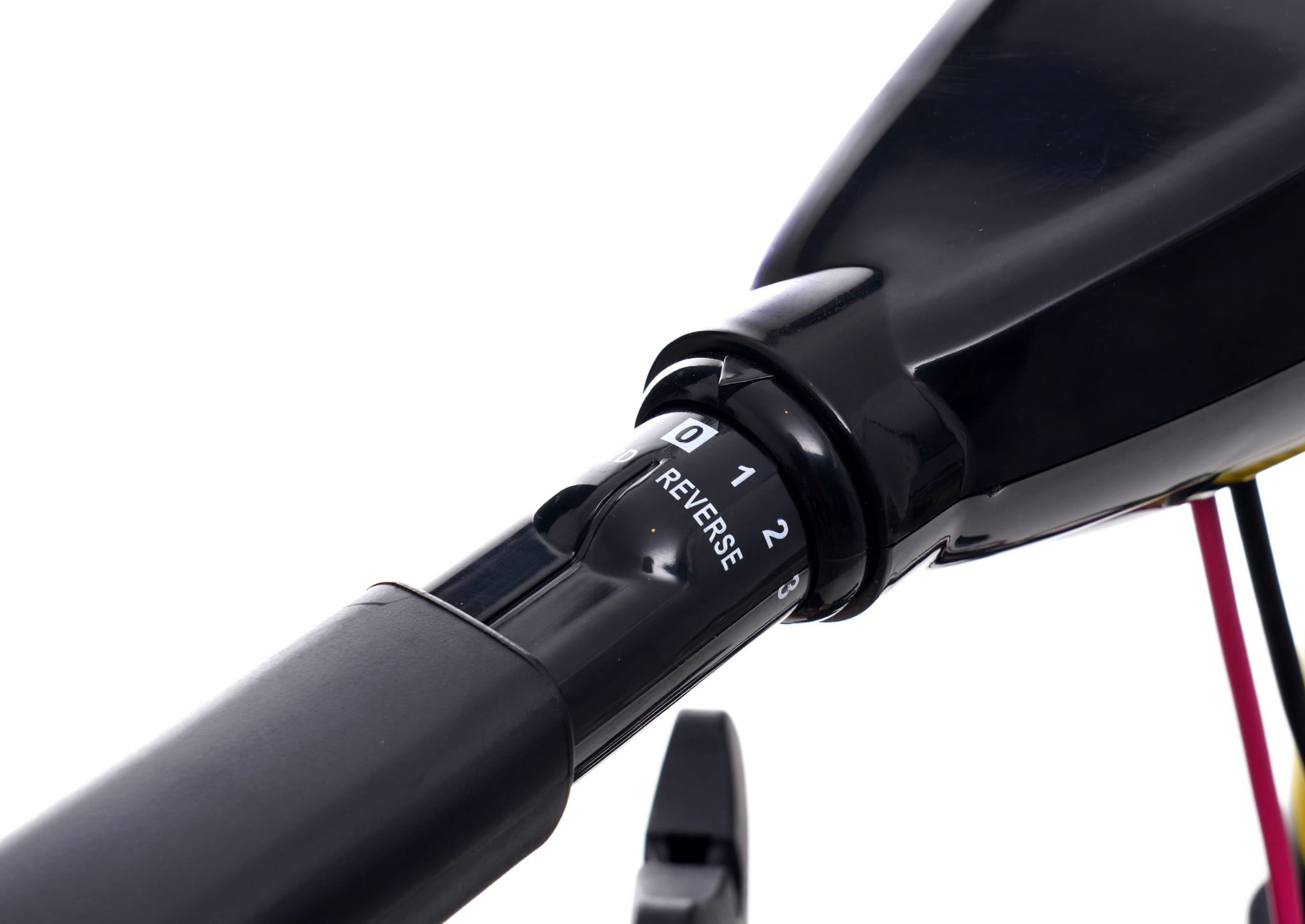 Rękojeść o długości 190 mm można rozszerzyć do 285 mm, co pozwala dostosować ergonomię sterowania do preferencji użytkownika. Wał o długości 92 cm i średnicy 28,6 mm zapewnia odpowiednie zanurzenie śruby napędowej w typowych pontonach i łodziach rekreacyjnych.