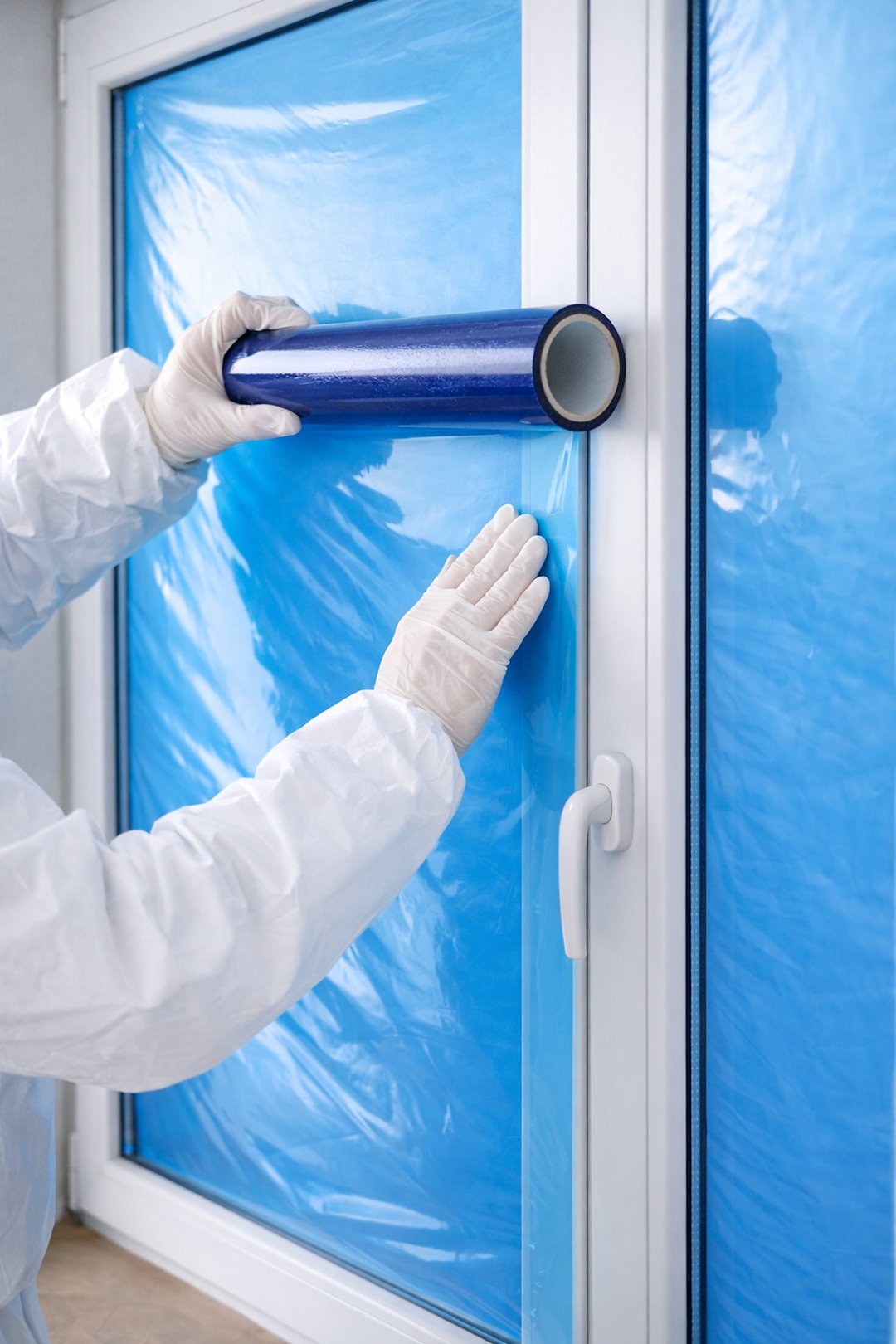 Jednostronnie klejona folia polietylenowa w kolorze niebieskim (półprzezroczystym), przeznaczona do tymczasowej ochrony szyb, okien, luster i innych gładkich powierzchni podczas prac remontowych, malarskich i budowlanych. Warstwa kleju z inhibitorem UV zapobiega trwałemu przyleganiu folii do podłoża, nawet przy dłuższej ekspozycji na słońce.