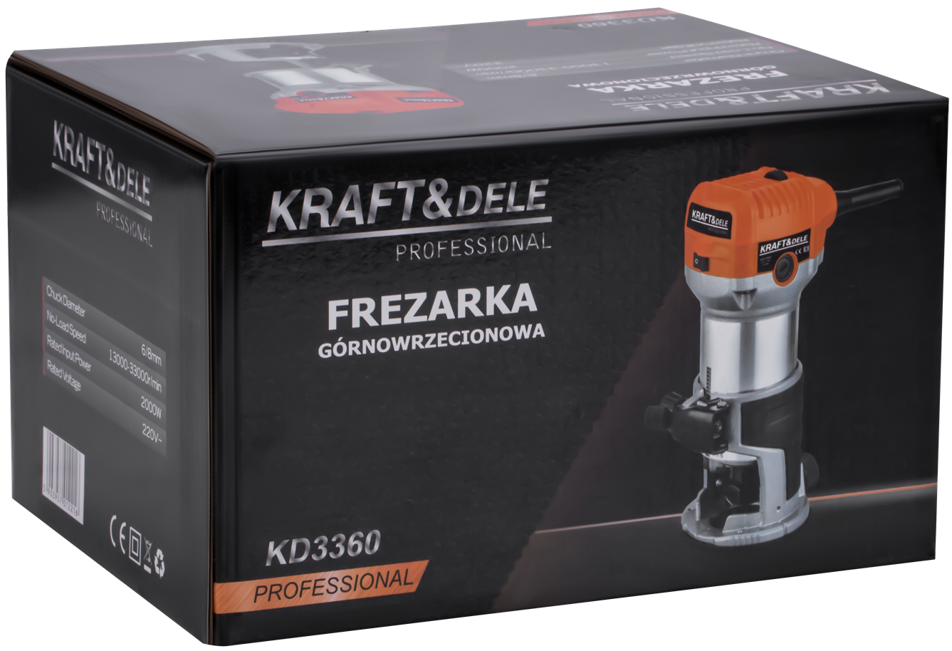 KD3360 to ręczna frezarka górnowrzecionowa przeznaczona do obróbki drewna i materiałów drewnopochodnych. Silnik o mocy 2000W oraz regulowana prędkość obrotowa w zakresie 13000–33000 rpm pozwalają na pracę z różnymi rodzajami frezów i materiałów — od miękkich gatunków drewna po płyty MDF i sklejkę.