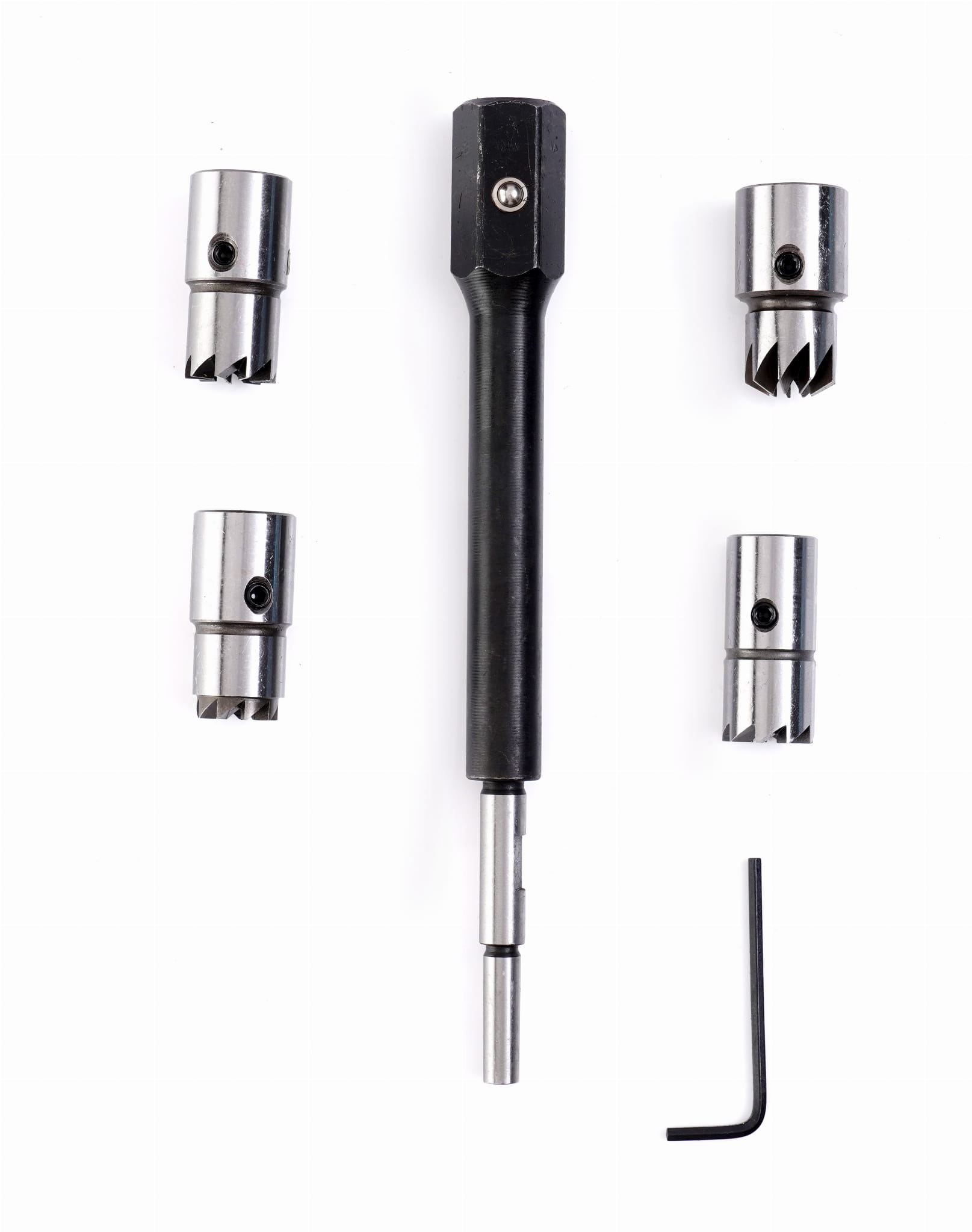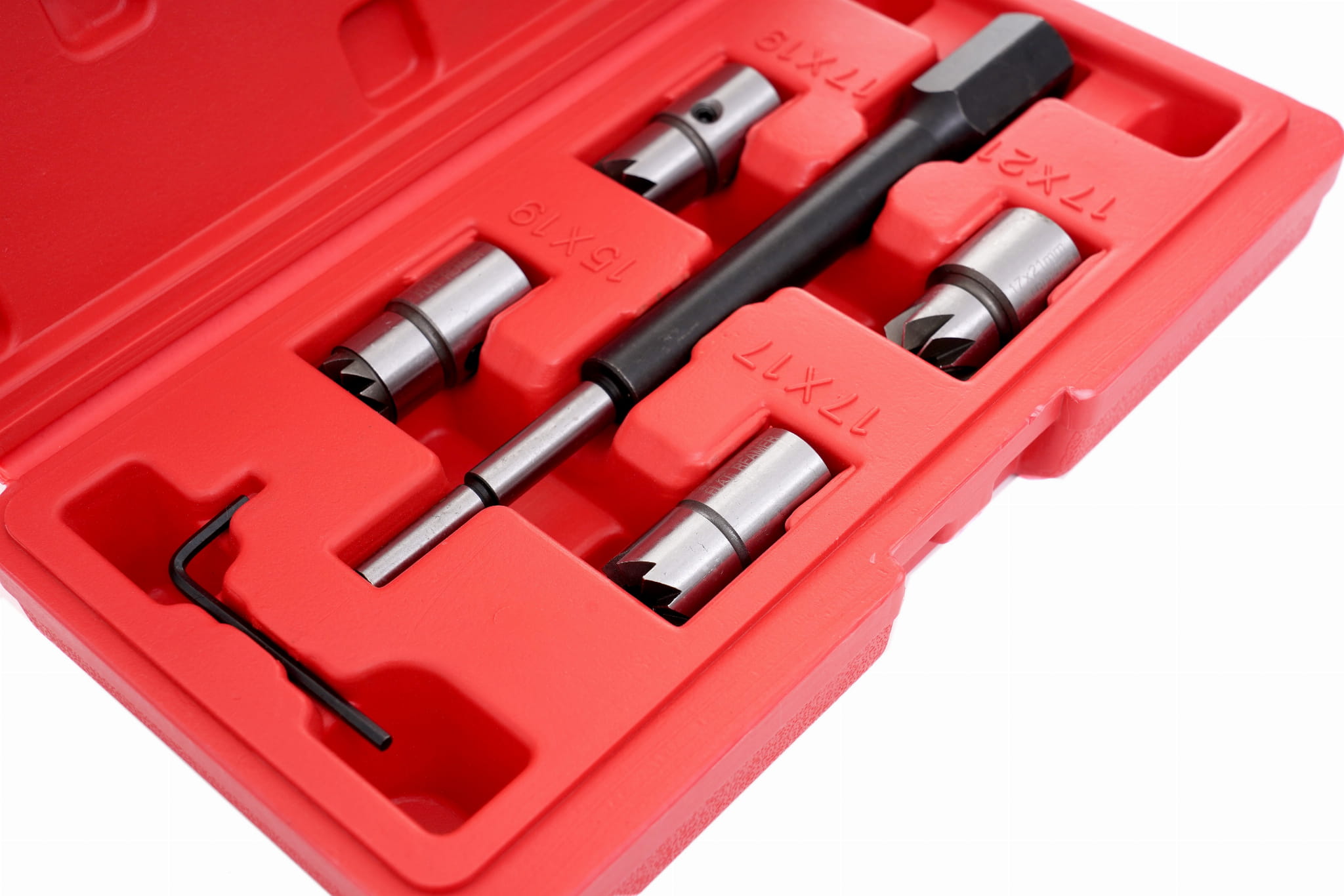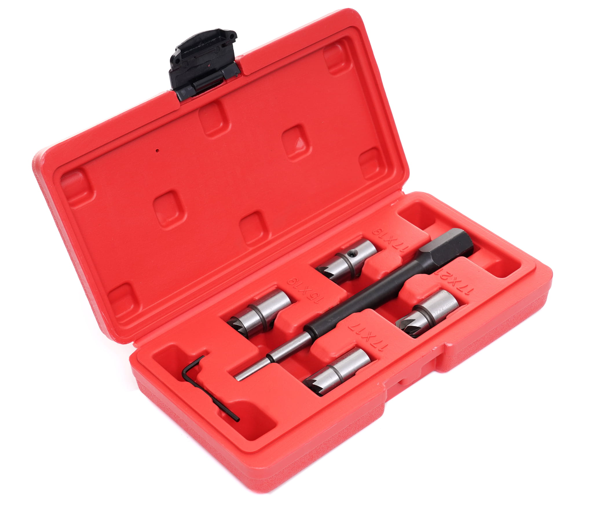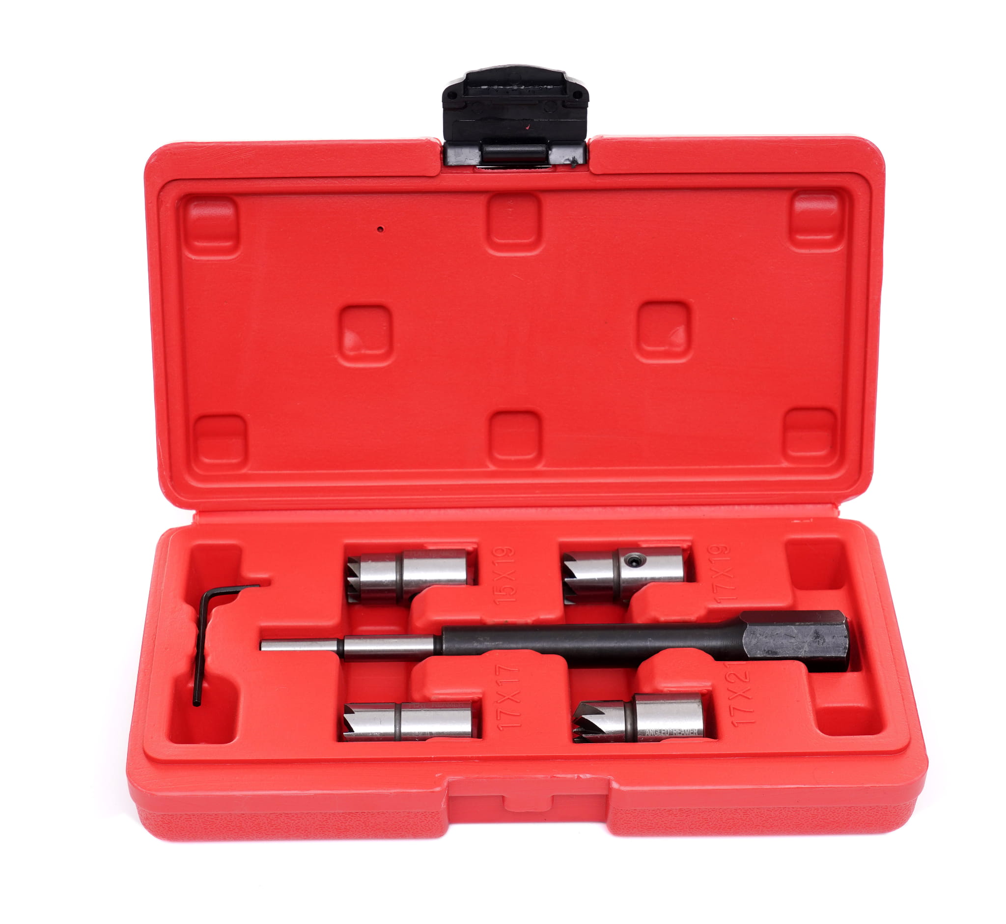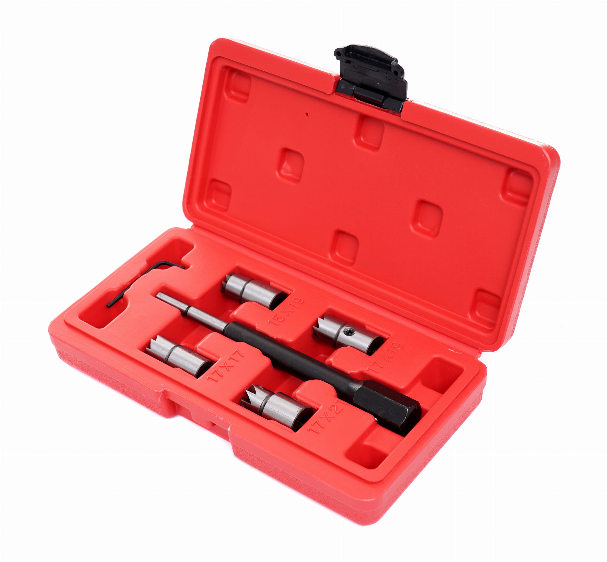 Komplet czterech frezów przeznaczonych do mechanicznego usuwania nagaru z gniazd wtryskiwaczy w silnikach diesla. Narzędzia umożliwiają wygładzenie powierzchni gniazda, co jest warunkiem koniecznym do uzyskania szczelnego przylegania podkładki uszczelniającej wtryskiwacza i zapobieżenia wypalaniu gniazda w głowicy silnika.