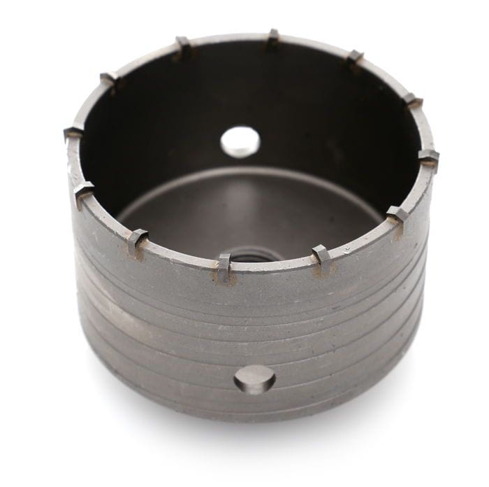 Zęby otwornic wykonane z twardych węglików spiekanych (HM/Widia) zachowują ostrość przy wierceniu w twardych podłożach mineralnych — betonie, cegle i glazurze — znacznie dłużej niż narzędzia ze stali szybkotnącej.