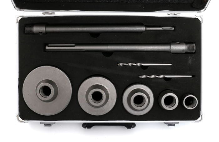 Zestaw wymaga wiertarki udarowej lub młotowiertarki wyposażonej w uchwyt SDS+ (nie SDS-Max). Przed zakupem należy sprawdzić, czy posiadane urządzenie obsługuje standard SDS+. Wiertarki z uchwytem wiertarskim wymagają zastosowania adaptera SDS+, który nie wchodzi w skład zestawu.