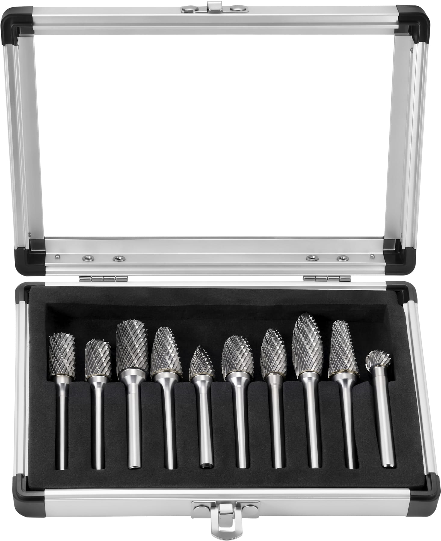 KD3580 to komplet 10 pilników rotacyjnych z węglika wolframu przeznaczonych do precyzyjnej obróbki metalu i innych twardych materiałów. Zestaw obejmuje frezy o 10 różnych kształtach roboczych z trzpieniem 6 mm, kompatybilnym z elektrycznymi i pneumatycznymi szlifierkami trzpieniowymi.