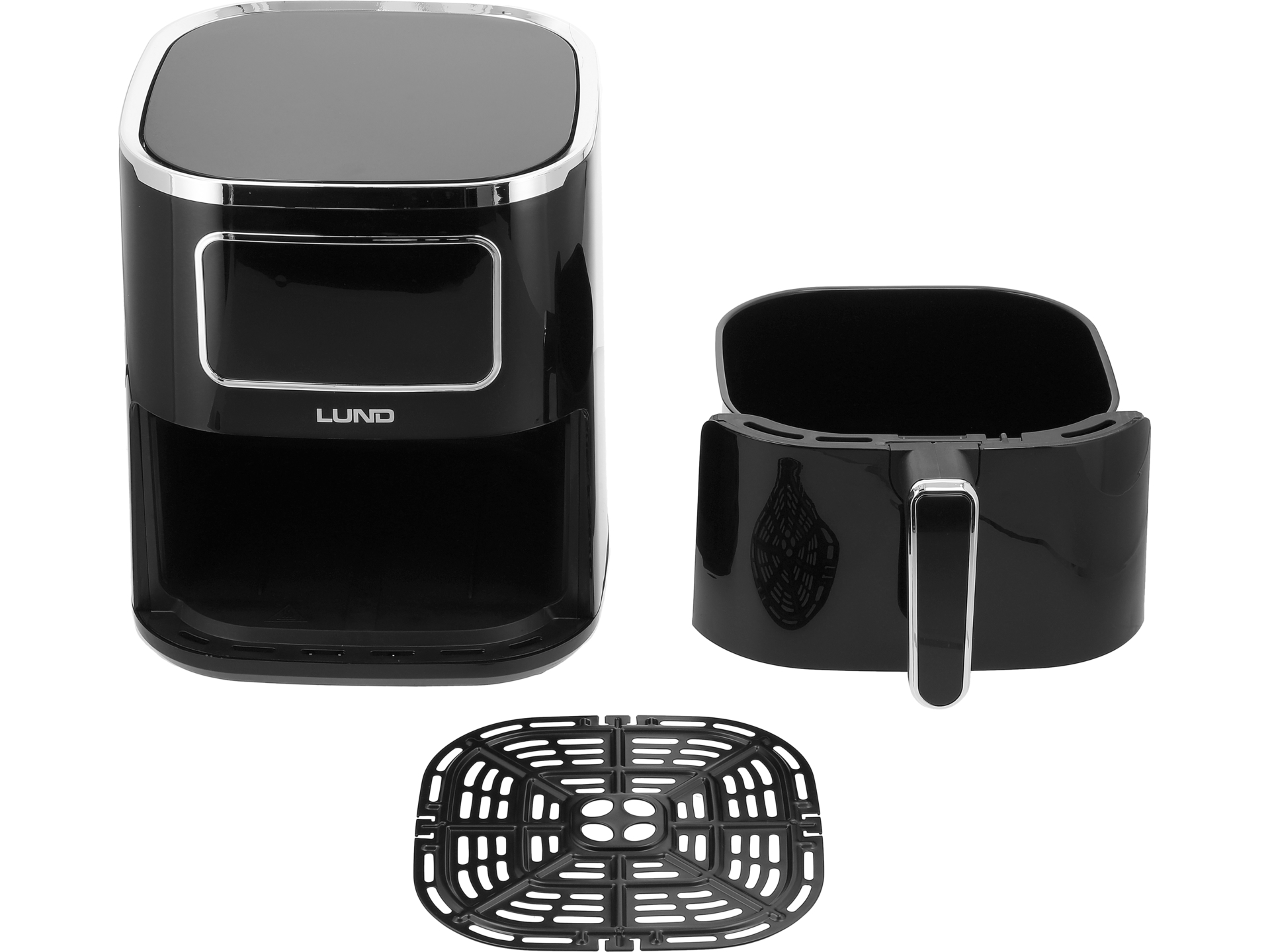 Frytkownica beztłuszczowa Lund łączy funkcje pięciu urządzeń kuchennych. Tryb smażenia wykorzystuje temperaturę 180-200°C do uzyskania chrupiącej zewnętrznej warstwy bez oleju. Tryb pieczenia przy 160-180°C nadaje się do przygotowywania mięs i wypieków. Funkcja grillowania przy maksymalnej temperaturze 200°C pozwala na uzyskanie charakterystycznych śladów i aromatu. Rozmrażanie odbywa się w niskich temperaturach 80-100°C, a podgrzewanie w zakresie 100-120°C zachowuje wilgotność potraw.