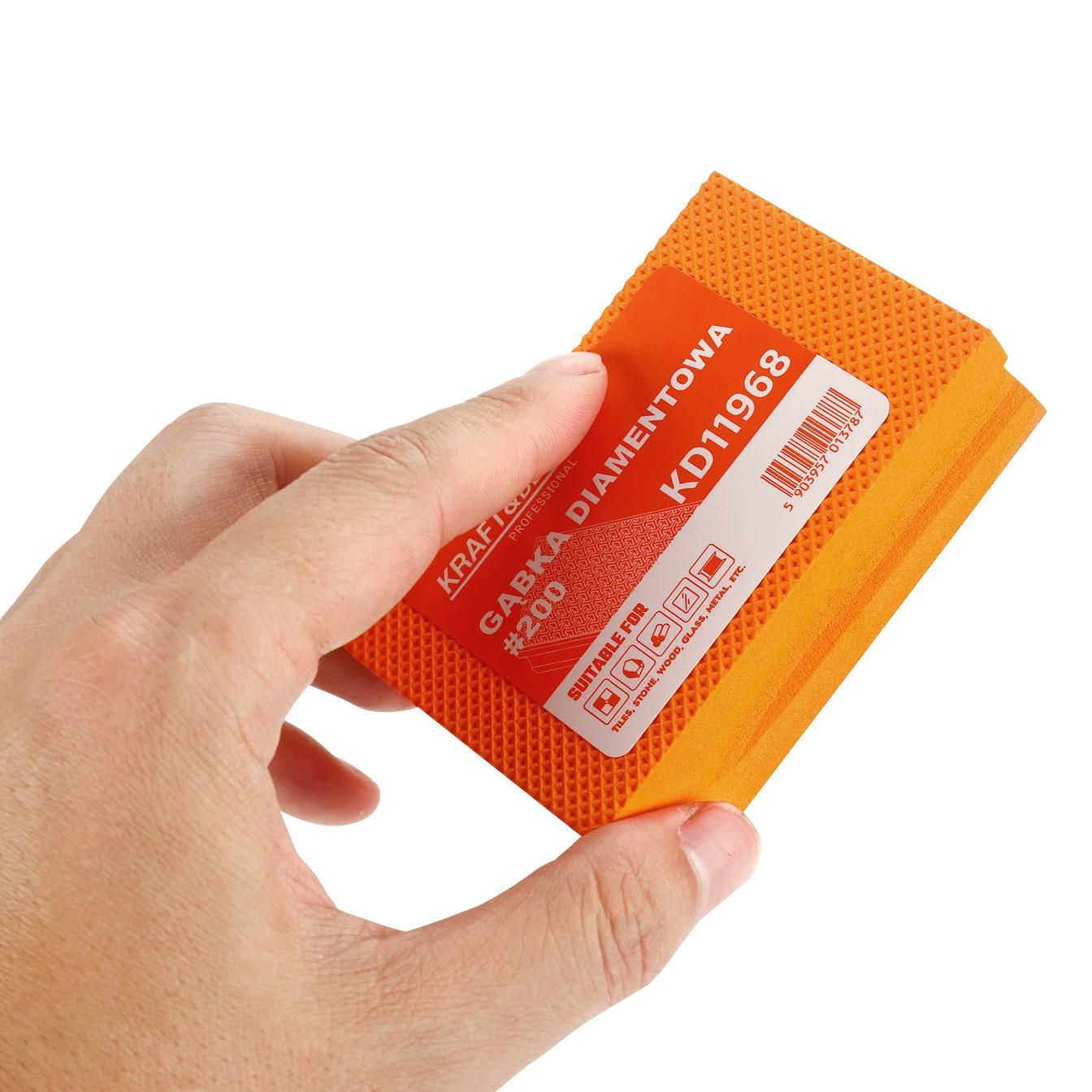 GĄBKA DIAMENTOWA P200 KD11968 KRAFT&DELE to solidna gąbka diamentowa do precyzyjnego szlifowania i wygładzania, zaprojektowana z myślą o pracy ręcznej i kontroli detalu. Jeśli szukasz narzędzia o gradacji #200 do płytek, kamienia, drewna, szkła lub metalu, model KD11968 będzie praktycznym uzupełnieniem zestawu.