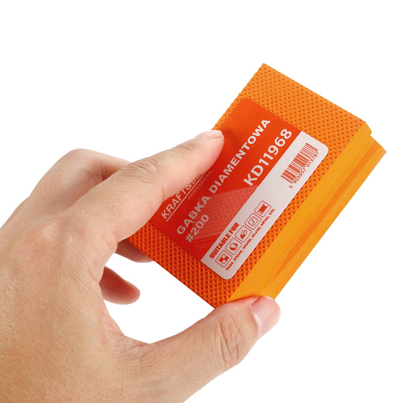 Ręczna gąbka ścierna z syntetycznym ziarnem diamentowym o gradacji #200, przeznaczona do precyzyjnego szlifowania i wygładzania powierzchni z płytek ceramicznych, kamienia, szkła, drewna i metalu. Gradacja #200 plasuje narzędzie w zakresie szlifowania średnio-drobnego — skutecznie usuwa nierówności i przygotowuje powierzchnię do dalszej obróbki lub wykończenia.