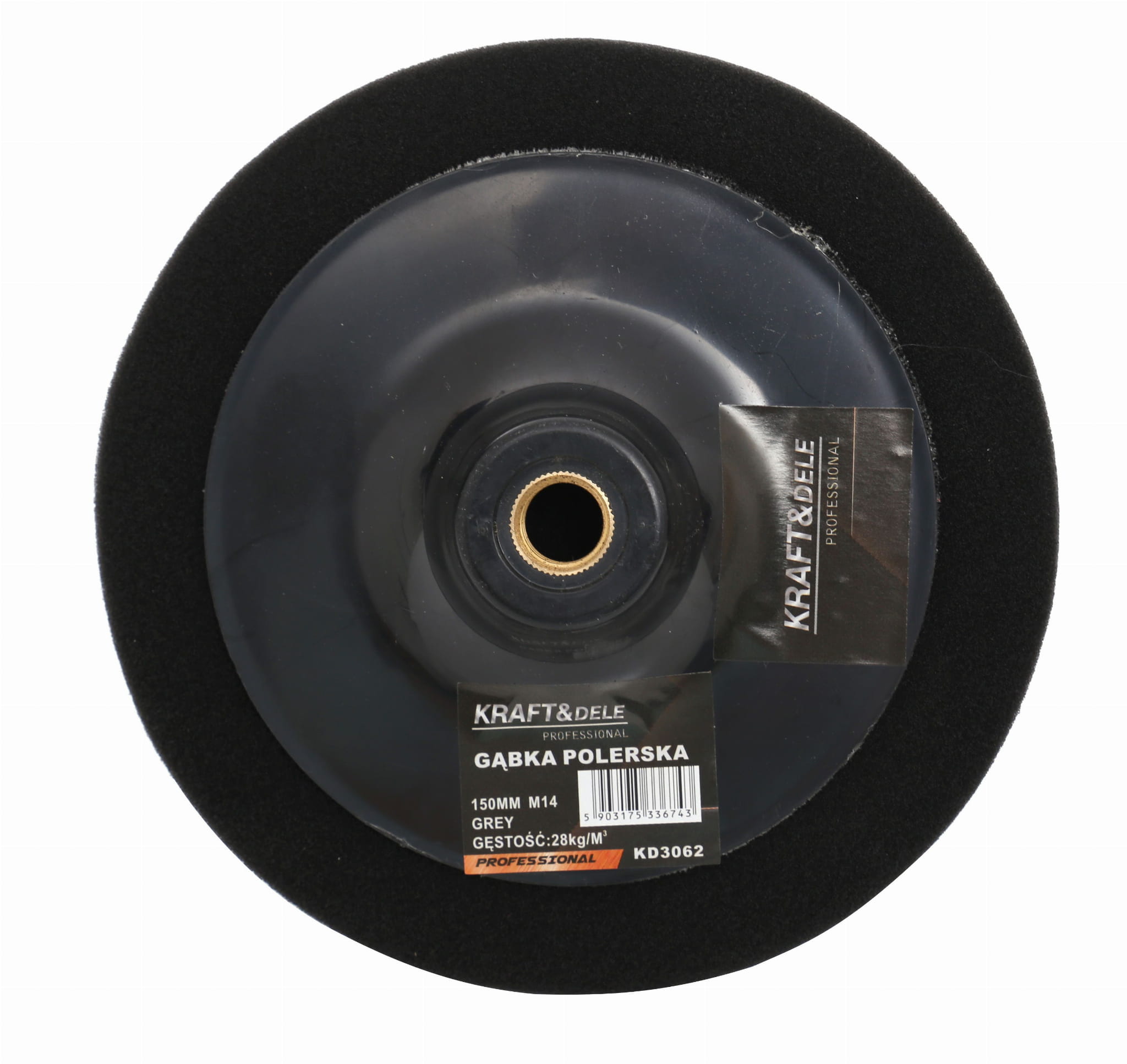 Gąbka polerska o średnicy 150 mm przeznaczona do montażu na polerkach i szlifierkach kątowych wyposażonych w gwint M14. Wykonana z pianki o gęstości 28 kg/m², co zapewnia odpowiednią sztywność podczas pracy z pastami polerskimi.