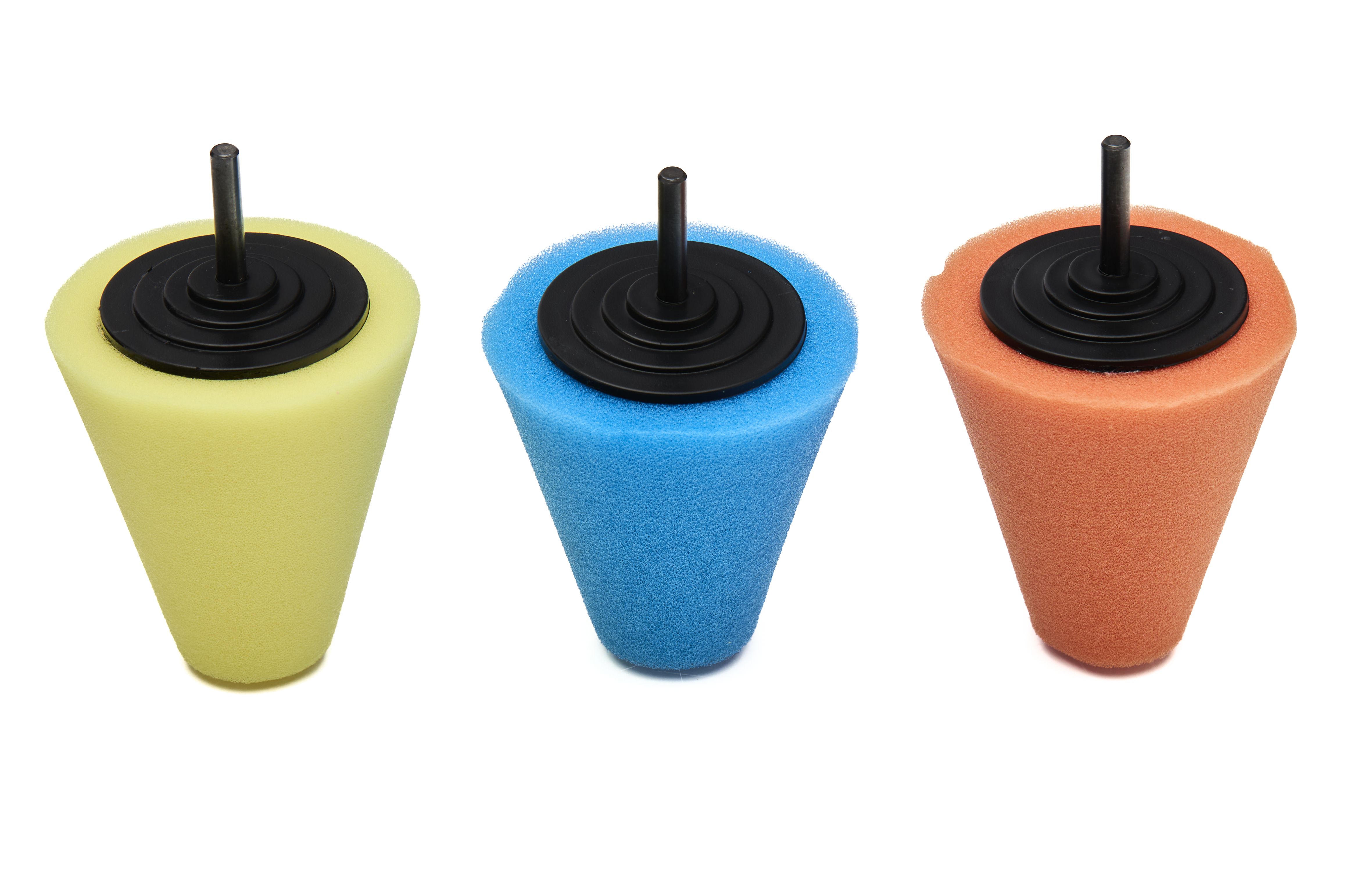 Gąbki polerskie stożek do felg 150mm zestaw 3szt. KD1592 są stworzone do detali i zakamarków, gdzie standardowe pady polerskie nie pracują stabilnie. To dobry wybór do korekty i odświeżenia elementów o złożonej geometrii.