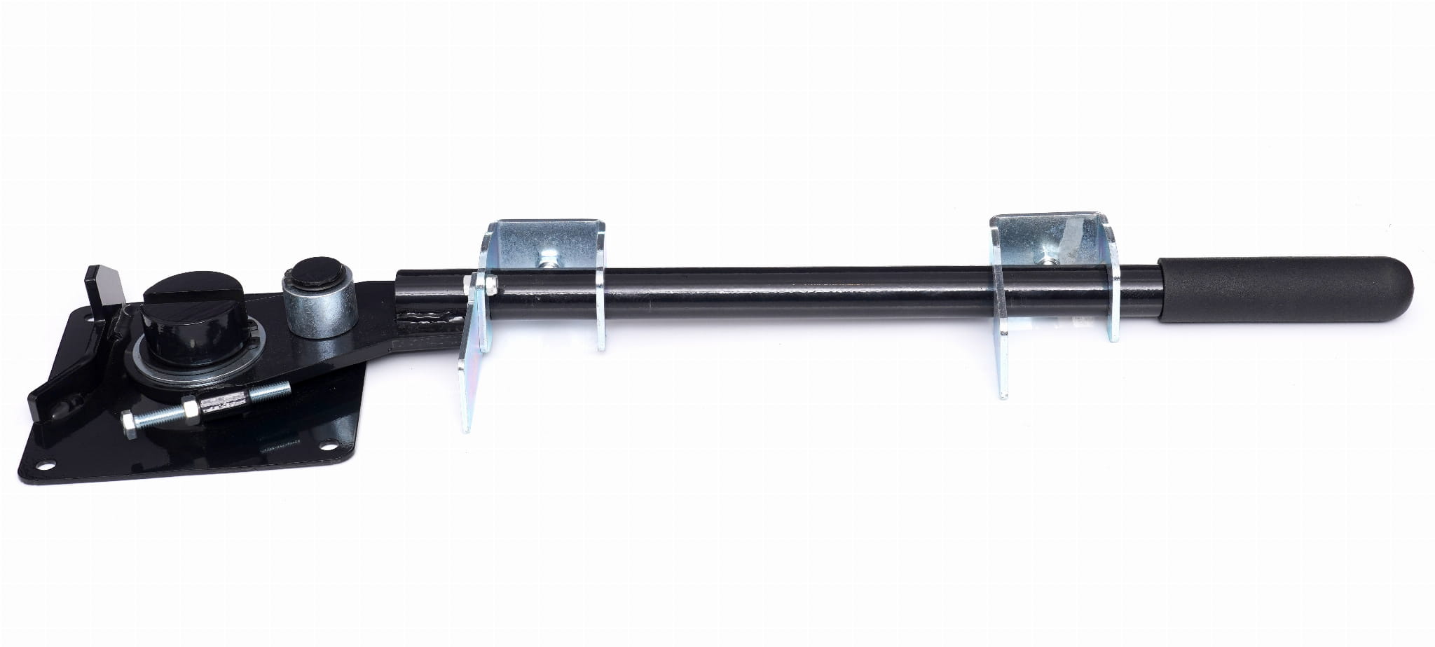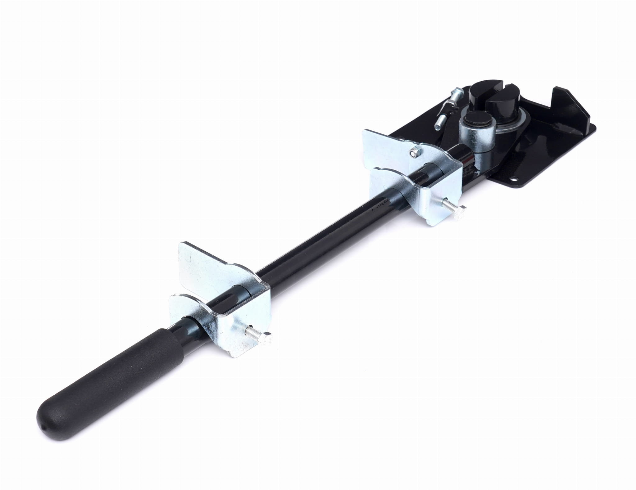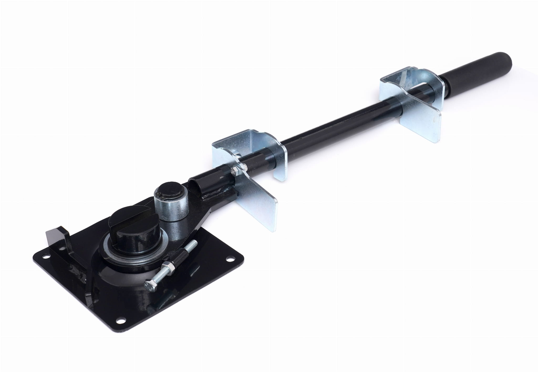 Płyta podstawy o wymiarach 160 x 160 x 5 mm umożliwia mocowanie giętarki do stołu roboczego lub innej stabilnej powierzchni. Stałe zamocowanie eliminuje przemieszczanie się narzędzia podczas wywierania siły na pręt.