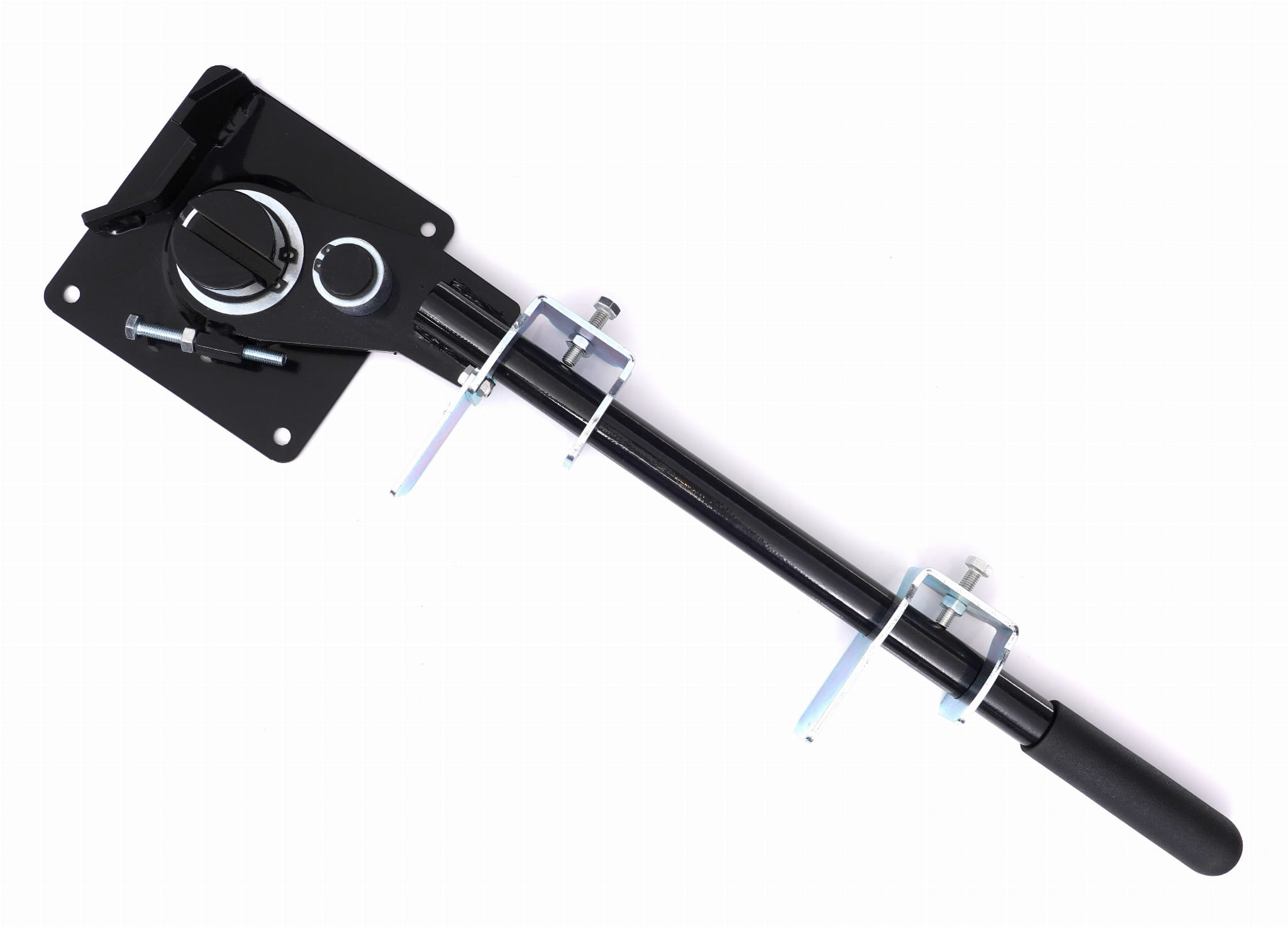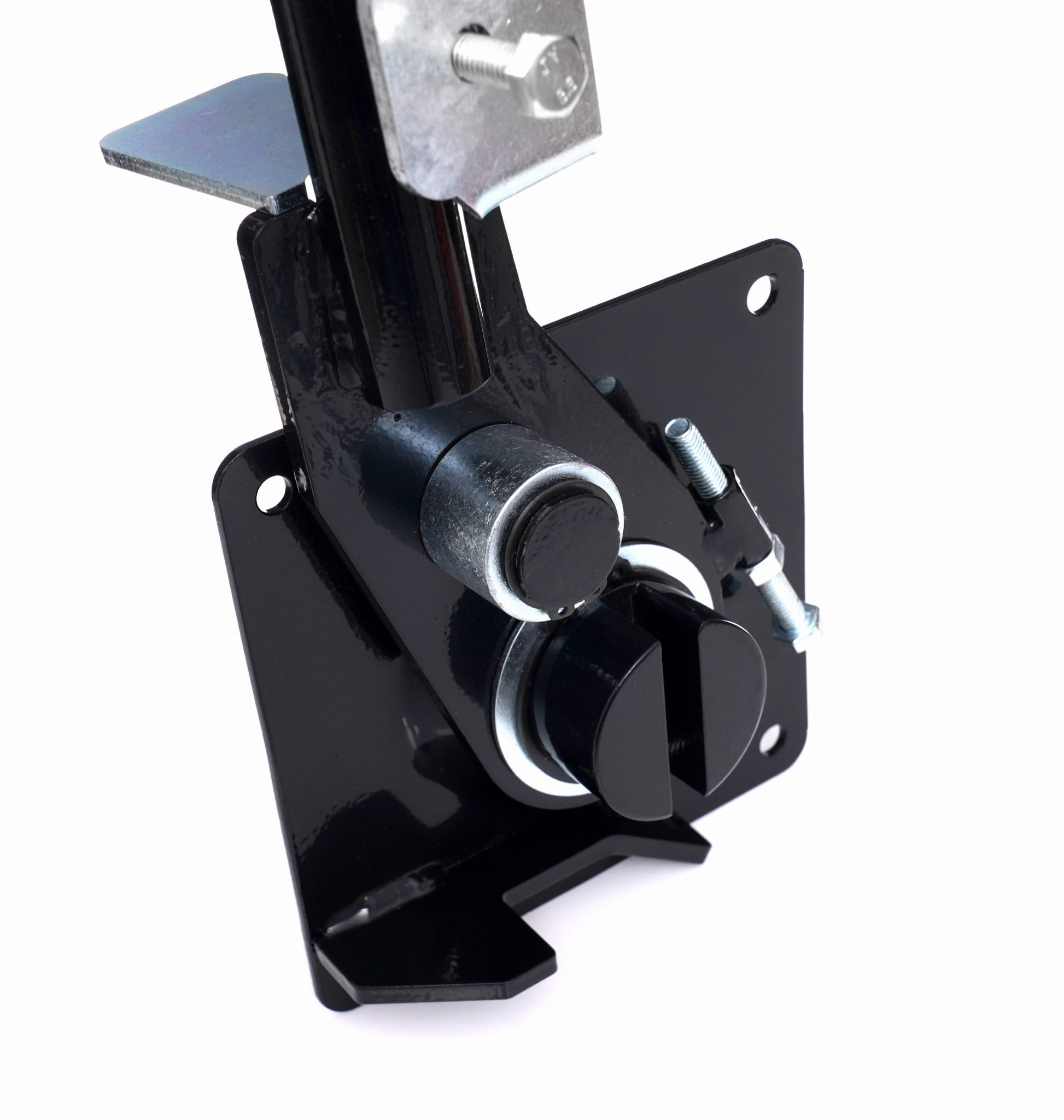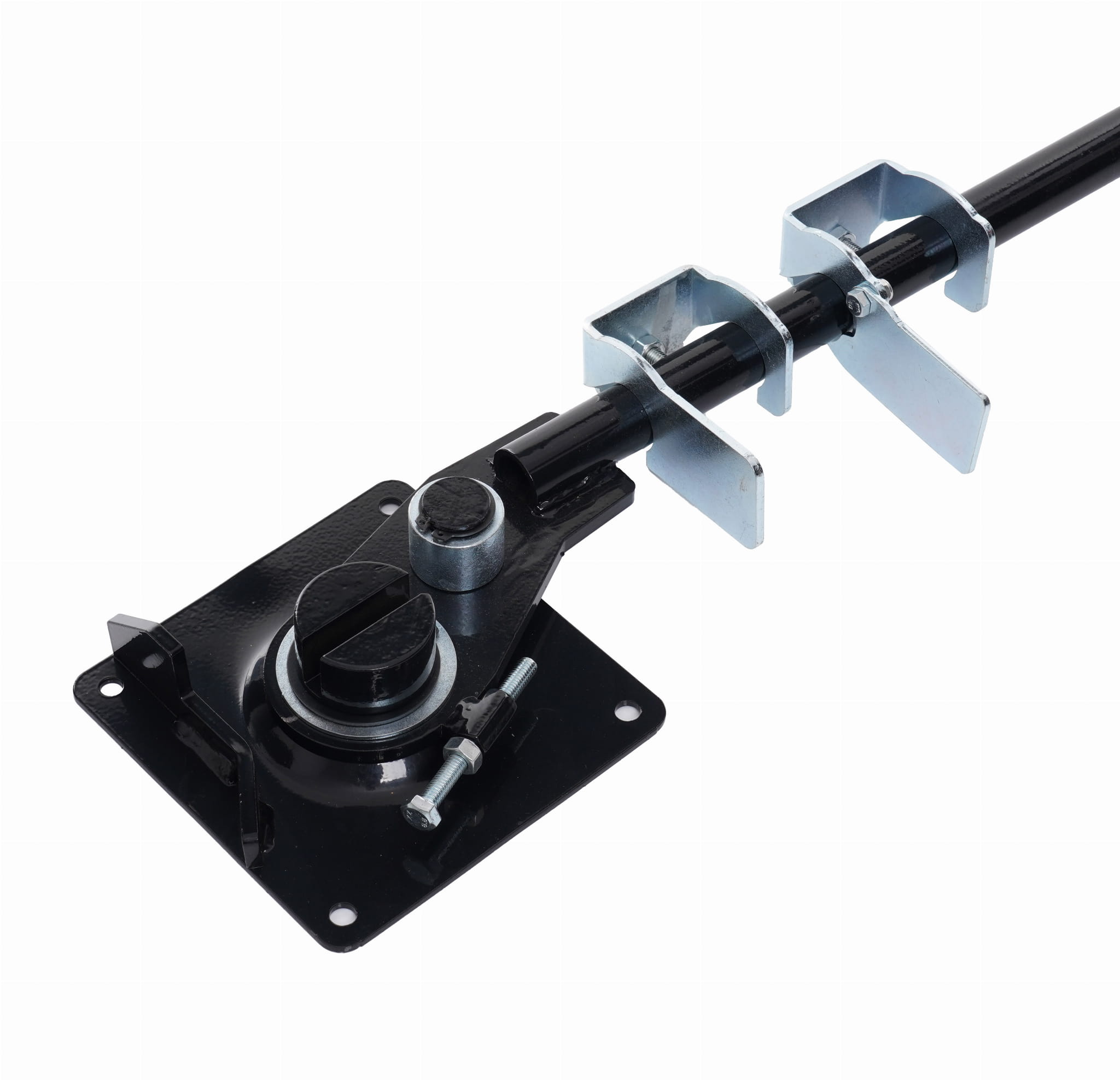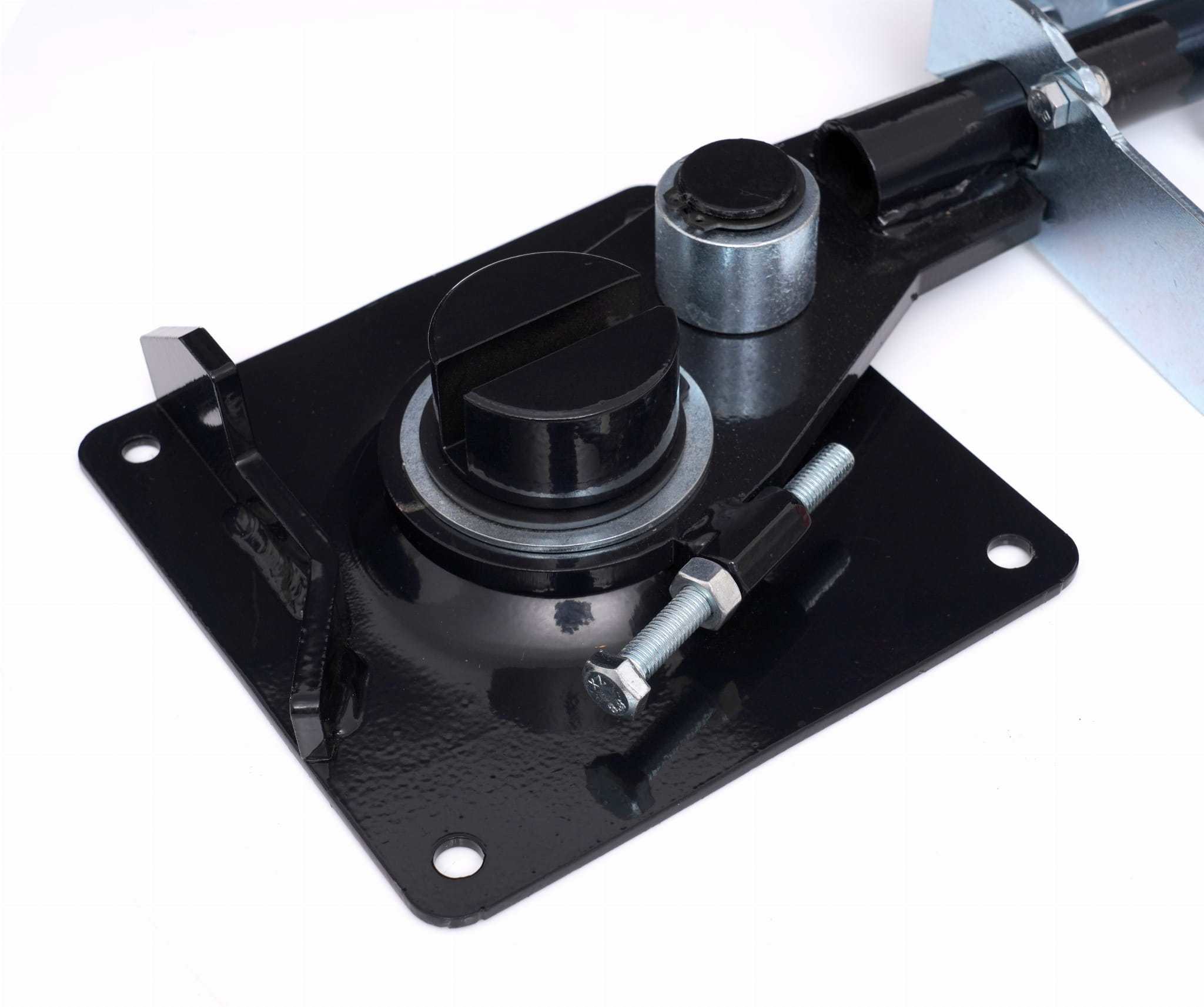 Płyta podstawy o wymiarach 160 x 160 x 5 mm umożliwia mocowanie giętarki do stołu roboczego lub innej stabilnej powierzchni. Stałe zamocowanie eliminuje przemieszczanie się narzędzia podczas wywierania siły na pręt.