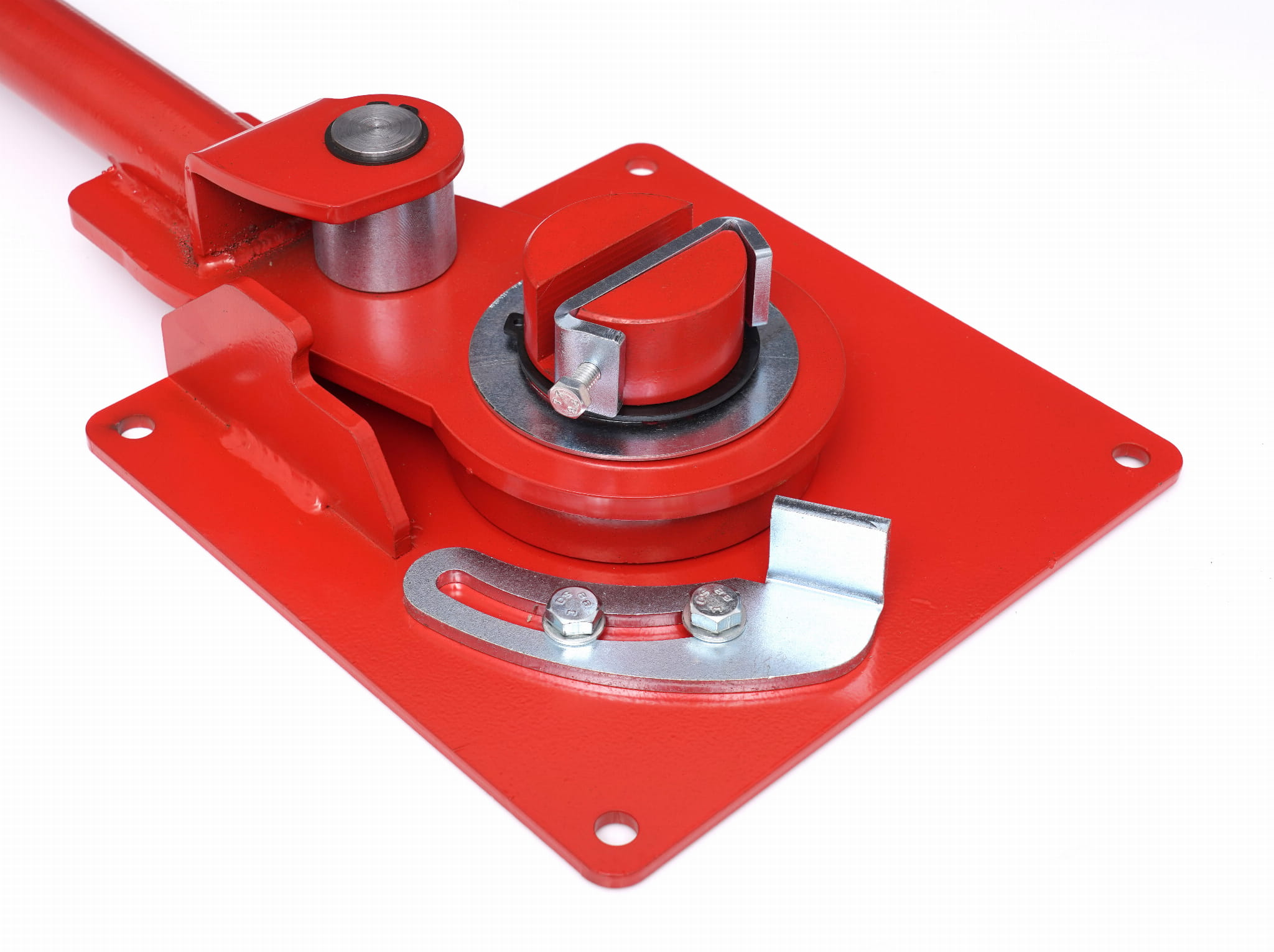 Podstawa o wymiarach 120×220×5 mm umożliwia pewne zamocowanie giętarki do stołu warsztatowego lub innej powierzchni roboczej, co zwiększa precyzję gięcia i bezpieczeństwo pracy.