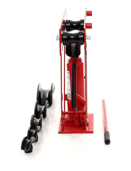 Ręczne pompowanie dźwignią pozwala pracować precyzyjnie i dostosować nacisk do materiału oraz średnicy rury.