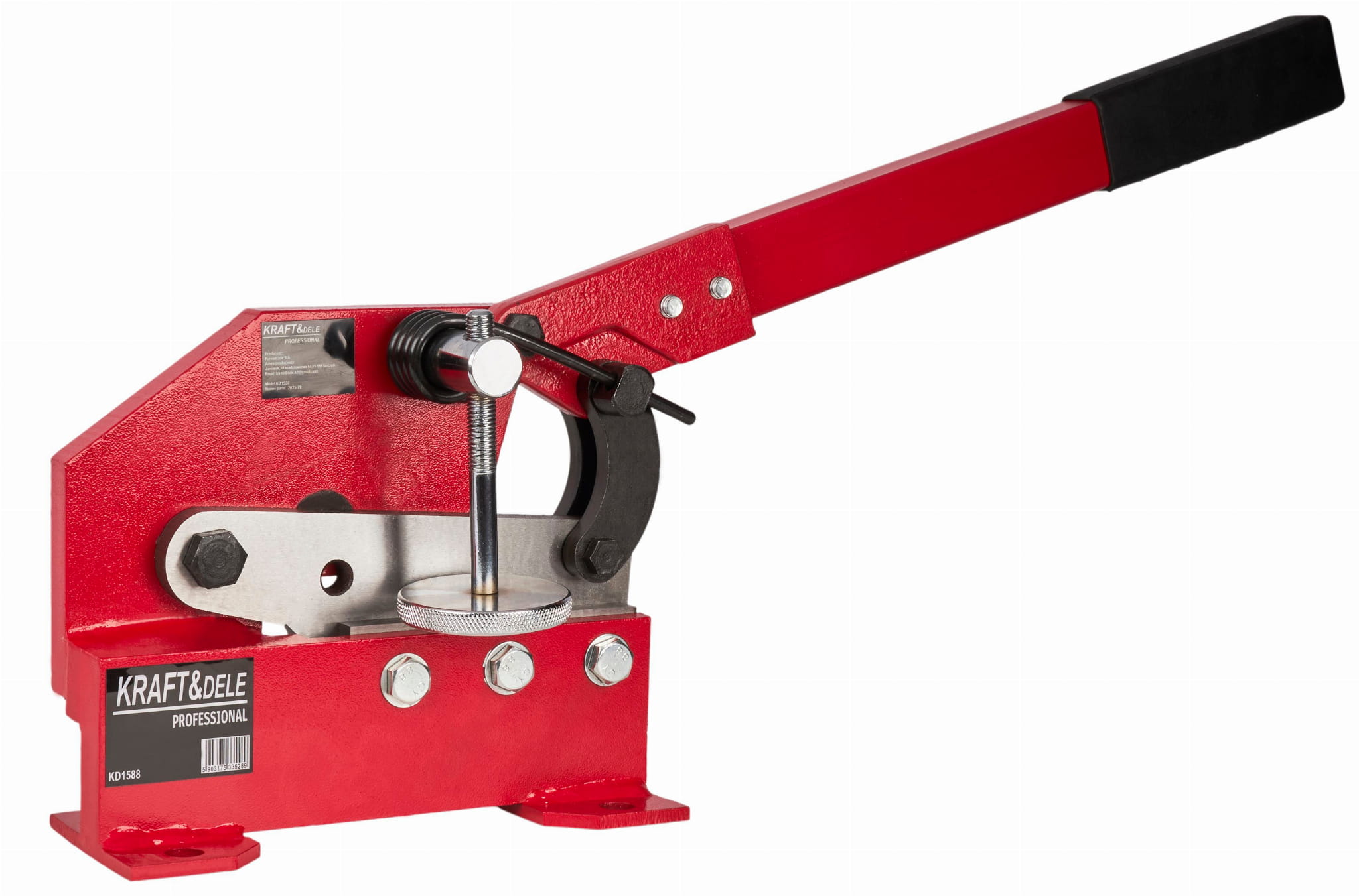 Ręczna gilotyna stołowa przeznaczona do cięcia blach stalowych oraz prętów bez użycia zasilania elektrycznego. Stalowa konstrukcja o wadze około 10 kg zapewnia stabilność podczas pracy, a ostrze o długości 125 mm (5") umożliwia wykonywanie prostych, czystych cięć bez odkształcania materiału.