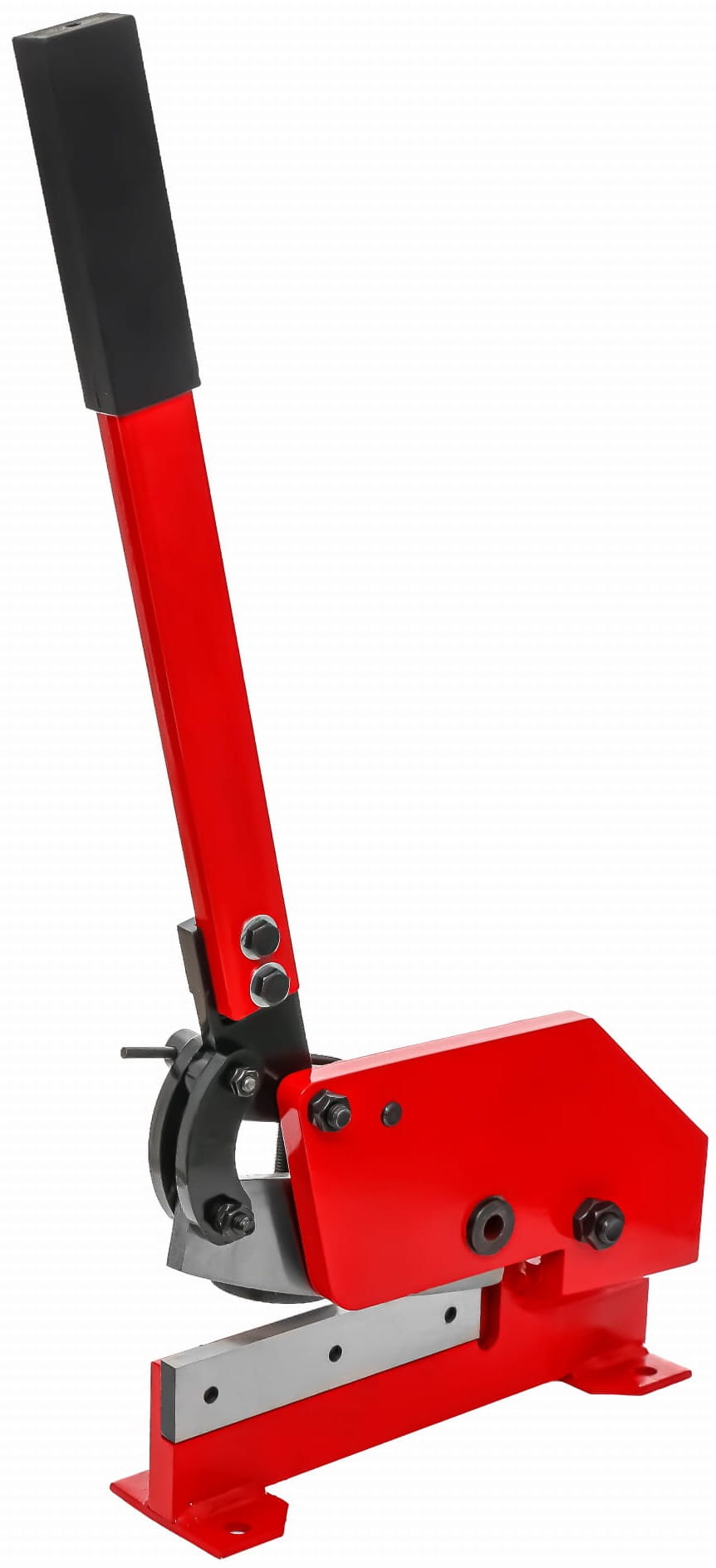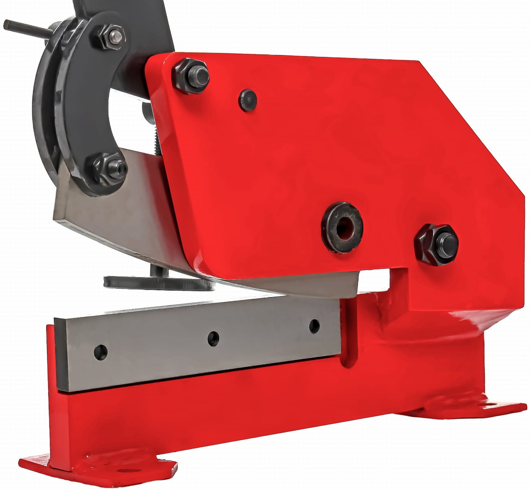 KD1589 to ręczna gilotyna warsztatowa przeznaczona do cięcia blach stalowych, prętów okrągłych i płaskowników. Nóż o długości 200 mm wykonany z hartowanej stali narzędziowej współpracuje z dźwigniowym mechanizmem cięcia, który pozwala uzyskać wymaganą siłę roboczą bez użycia napędu elektrycznego.