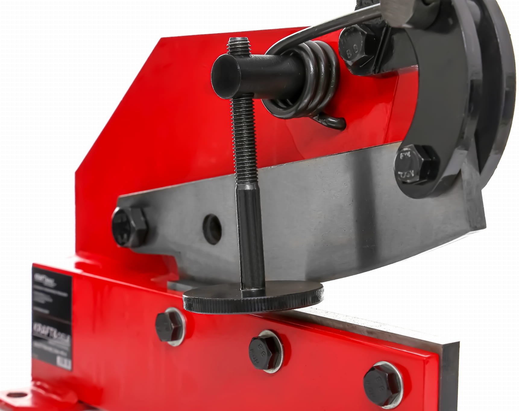 Dociskacz unieruchamia ciętą blachę lub pręt bezpośrednio przed linią cięcia. Eliminuje przesuwanie się materiału podczas pracy, co zwiększa powtarzalność wymiarów i ogranicza ryzyko niekontrolowanego ruchu elementu.