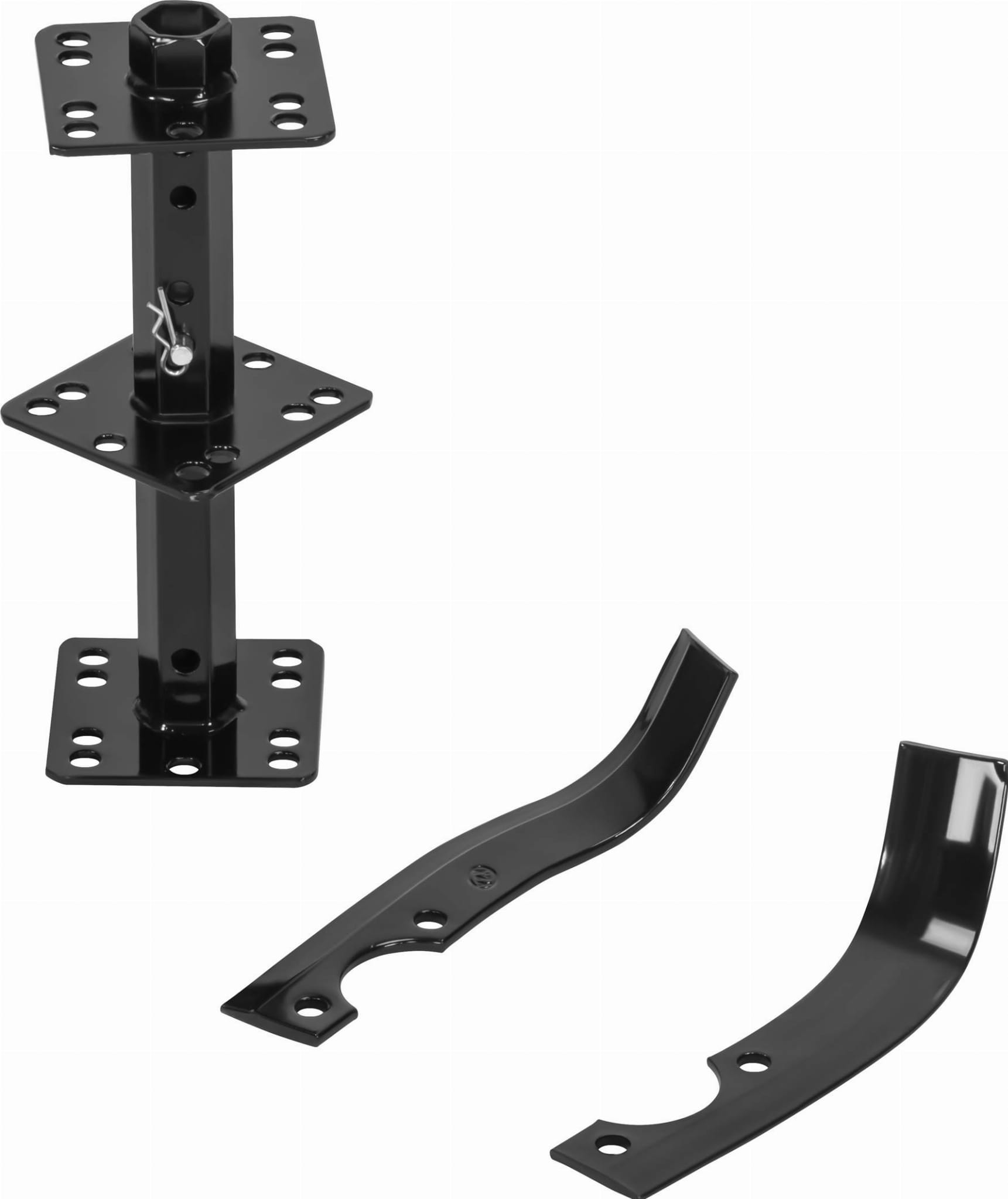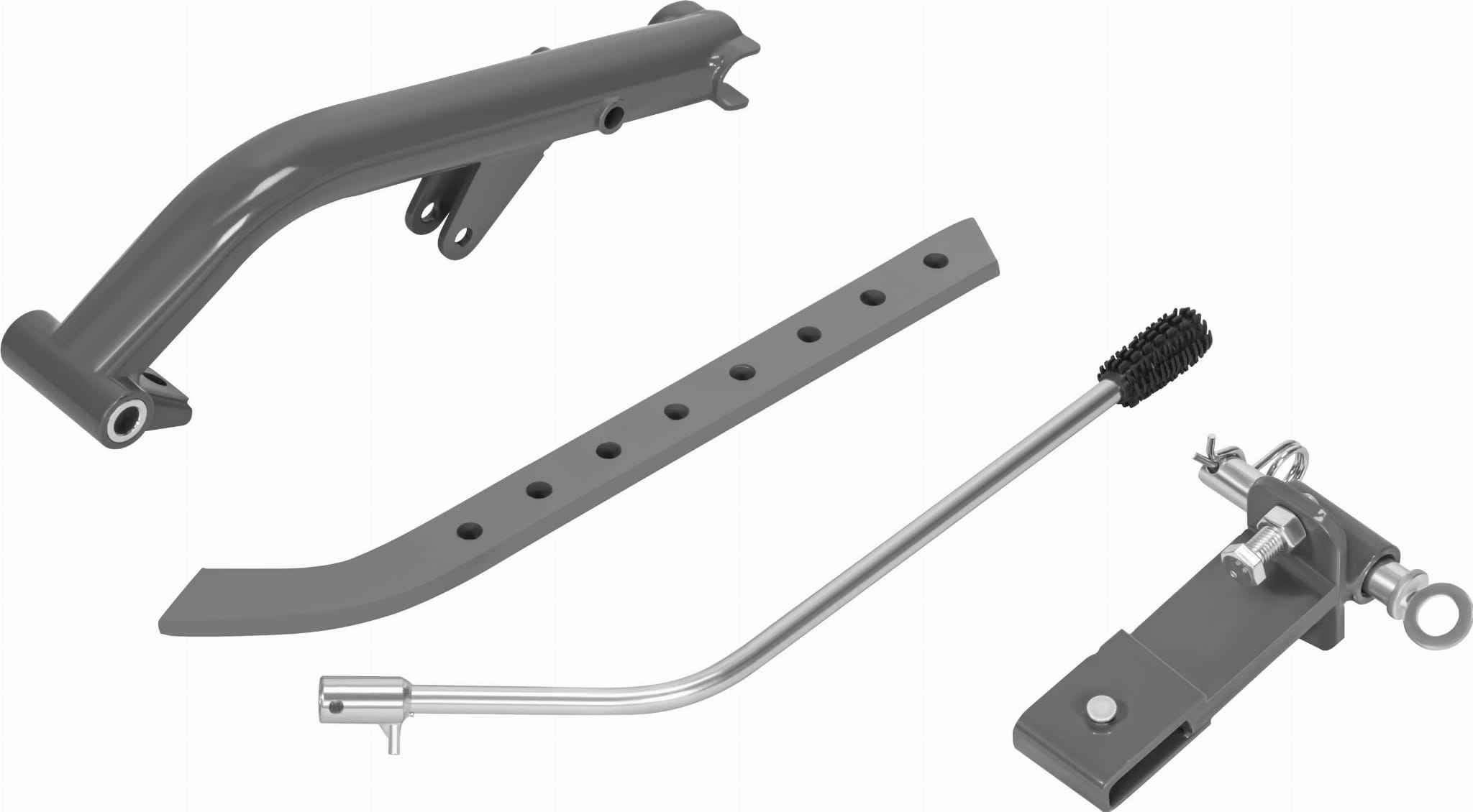W zestawie znajdują się wyorywacz i pług, które rozszerzają możliwości maszyny o wykonywanie bruzd i redlin — przydatnych przy sadzeniu ziemniaków lub innych warzyw rzędowych. Błotniki ograniczają wyrzucanie gleby w kierunku operatora, metalowe tarcze ochronne osłaniają noże podczas pracy, a stalowy wspornik stabilizuje maszynę podczas postoju i transportu.