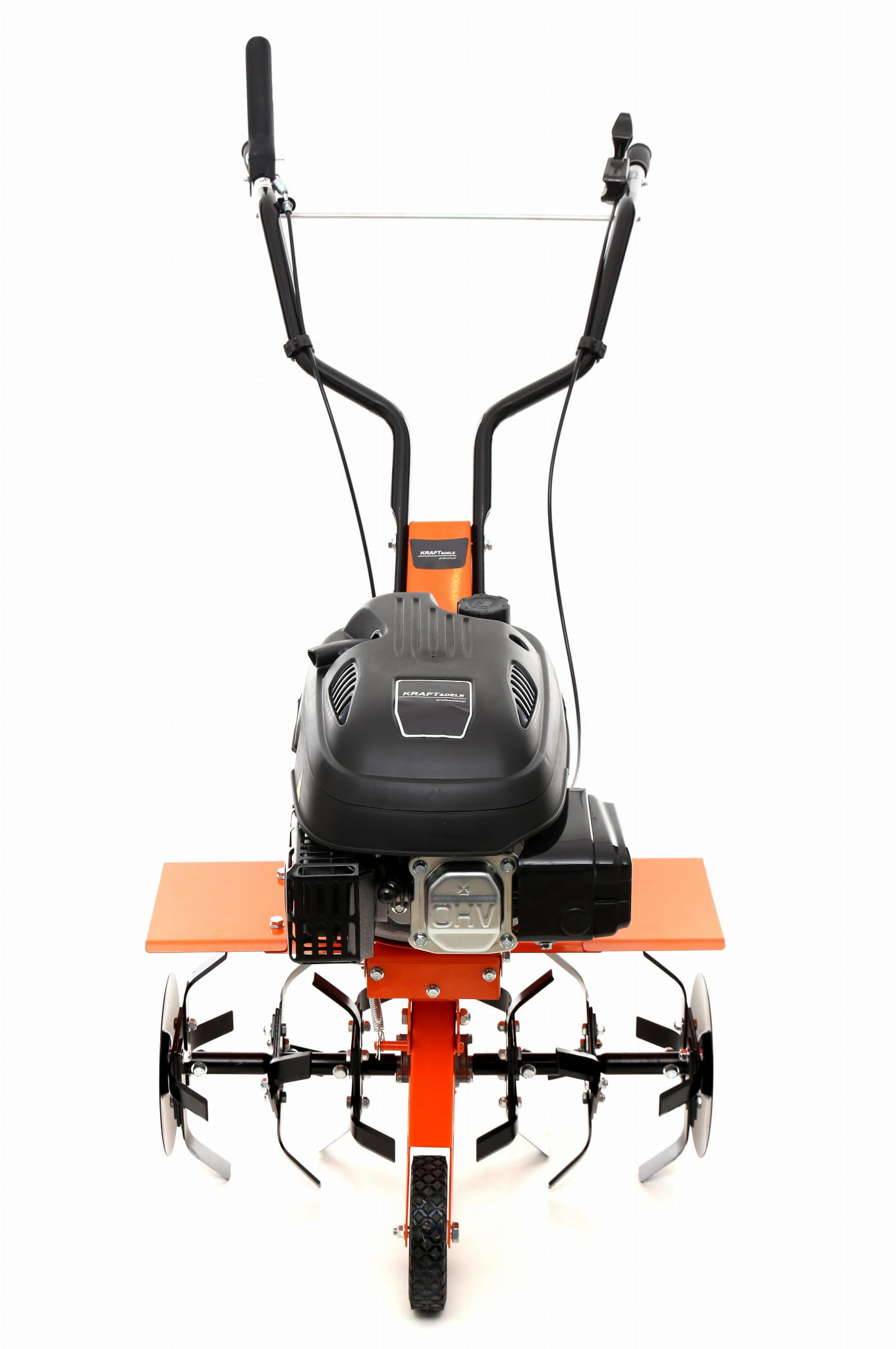 KD5161 to glebogryzarka spalinowa z silnikiem czterosuwowym o pojemności 139 cm³ i mocy 5,2 KM, przeznaczona do uprawy gleby lekkiej i średniej. Stalowa obudowa i zestaw noży tnących umożliwiają kultywację na głębokość do 260 mm przy szerokości pasa roboczego 600 mm.