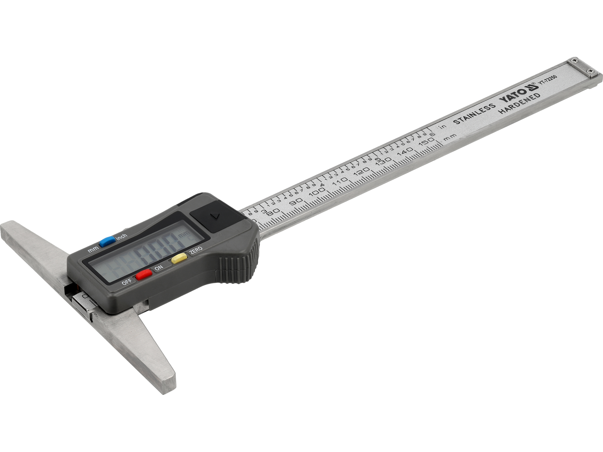Elektroniczny przyrząd pomiarowy do precyzyjnego mierzenia głębokości otworów, rowków, wpustów i schodków. Wyposażony w cyfrowy wyświetlacz LCD z przełączaniem jednostek metrycznych i calowych.