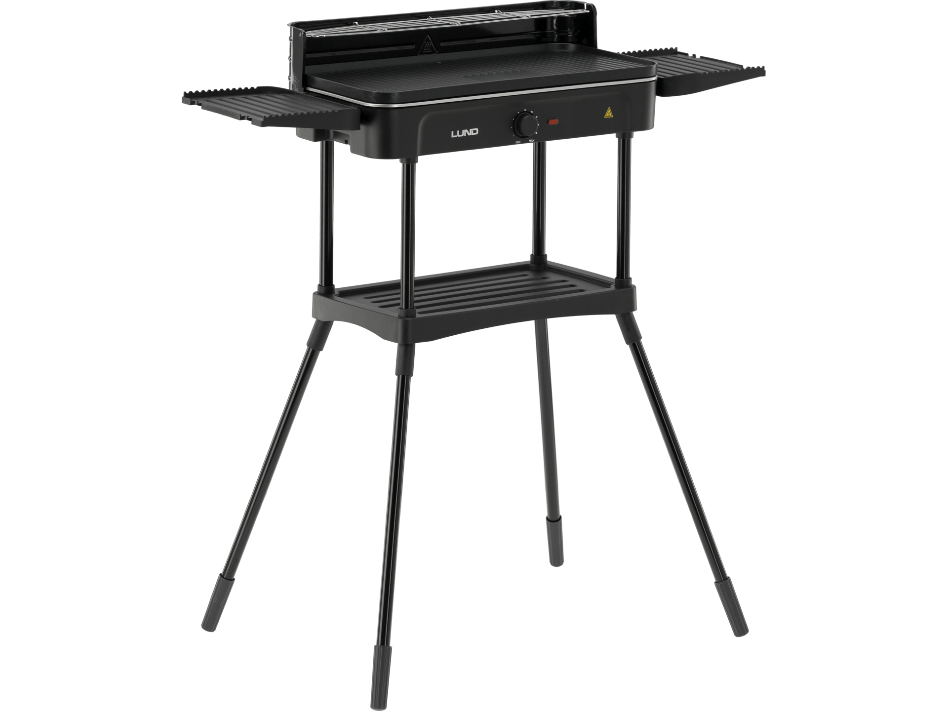 Grill LUND został wyposażony w praktyczne półki boczne i dolną półkę, które zapewniają przestrzeń na akcesoria, przyprawy i napoje, co czyni grillowanie jeszcze bardziej komfortowym. Stabilna konstrukcja i wyższy rant ułatwiają utrzymanie czystości. Rurka grzewcza ze stali nierdzewnej gwarantuje szybkie nagrzewanie i równomierny rozkład ciepła, co przekłada się na doskonałe wyniki grillowania.